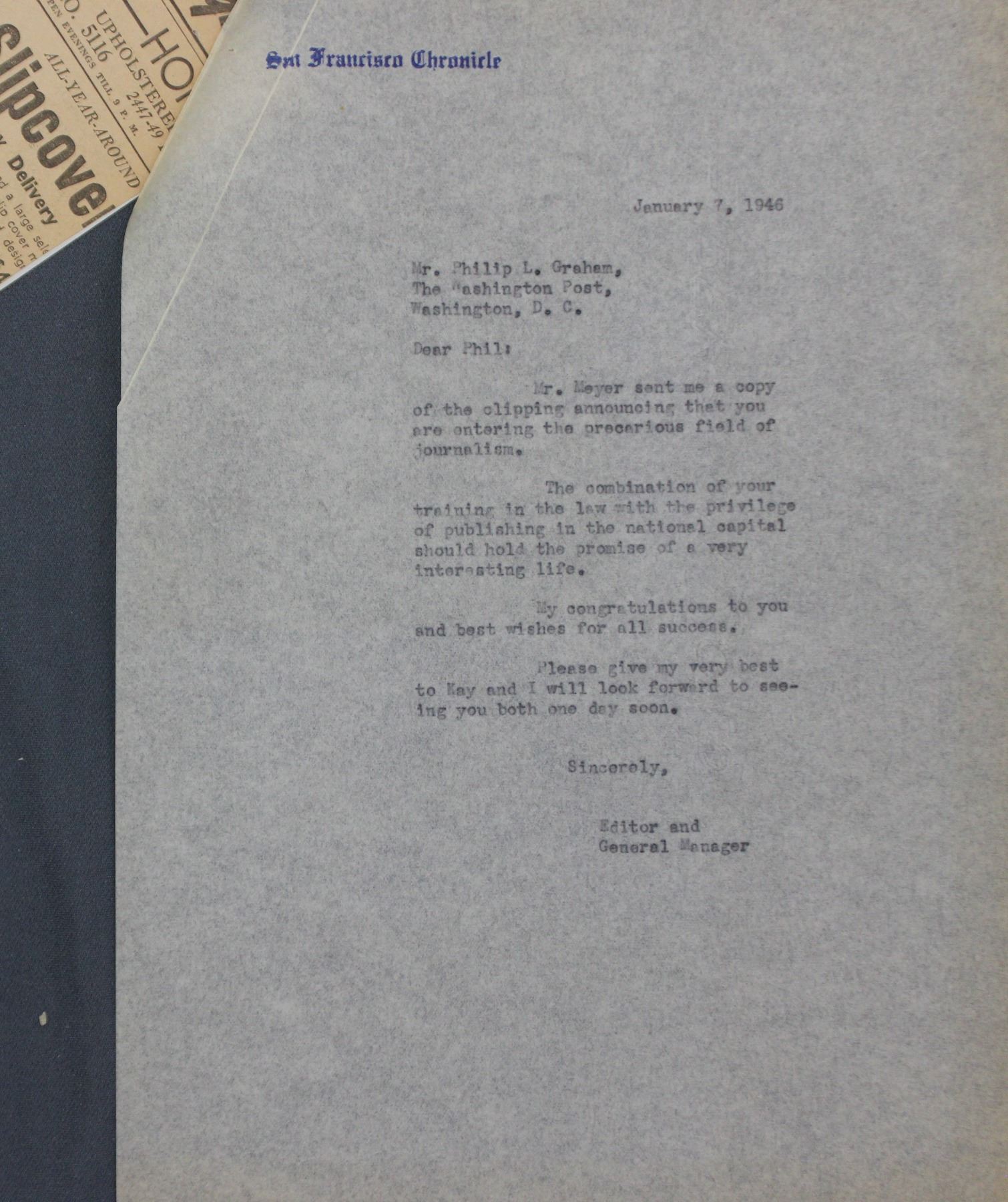 A letter addressed to Mr. Paul C. Smith, Chief Editor of the San Francisco Chronicle.