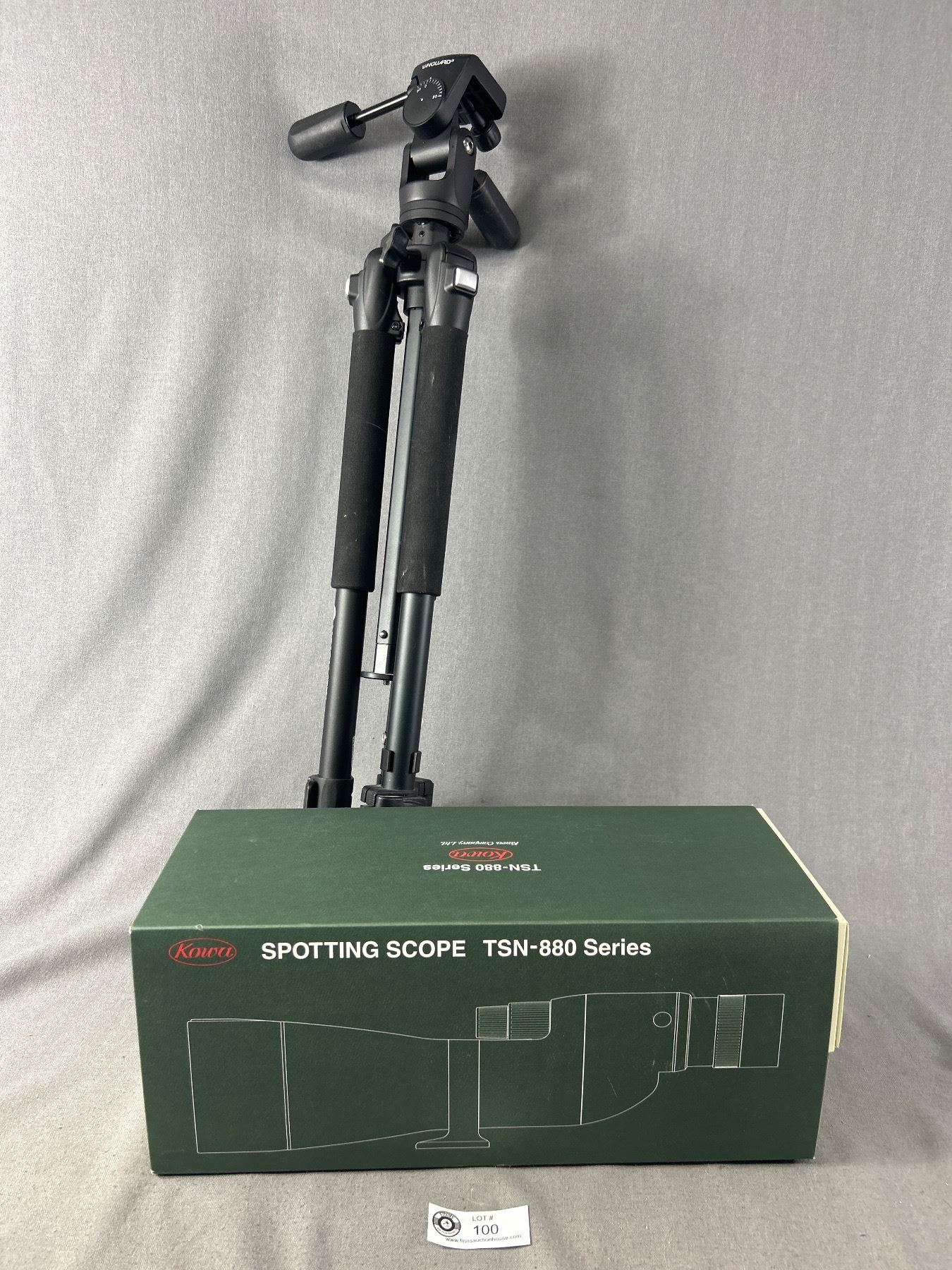 Excellent Condition Kowa Spotting Scope TSN-880 Series Made In Japan In Original Box w/ Vanguard Tracker 3 Tri-Pod Stand. Valued At Over $2000.00