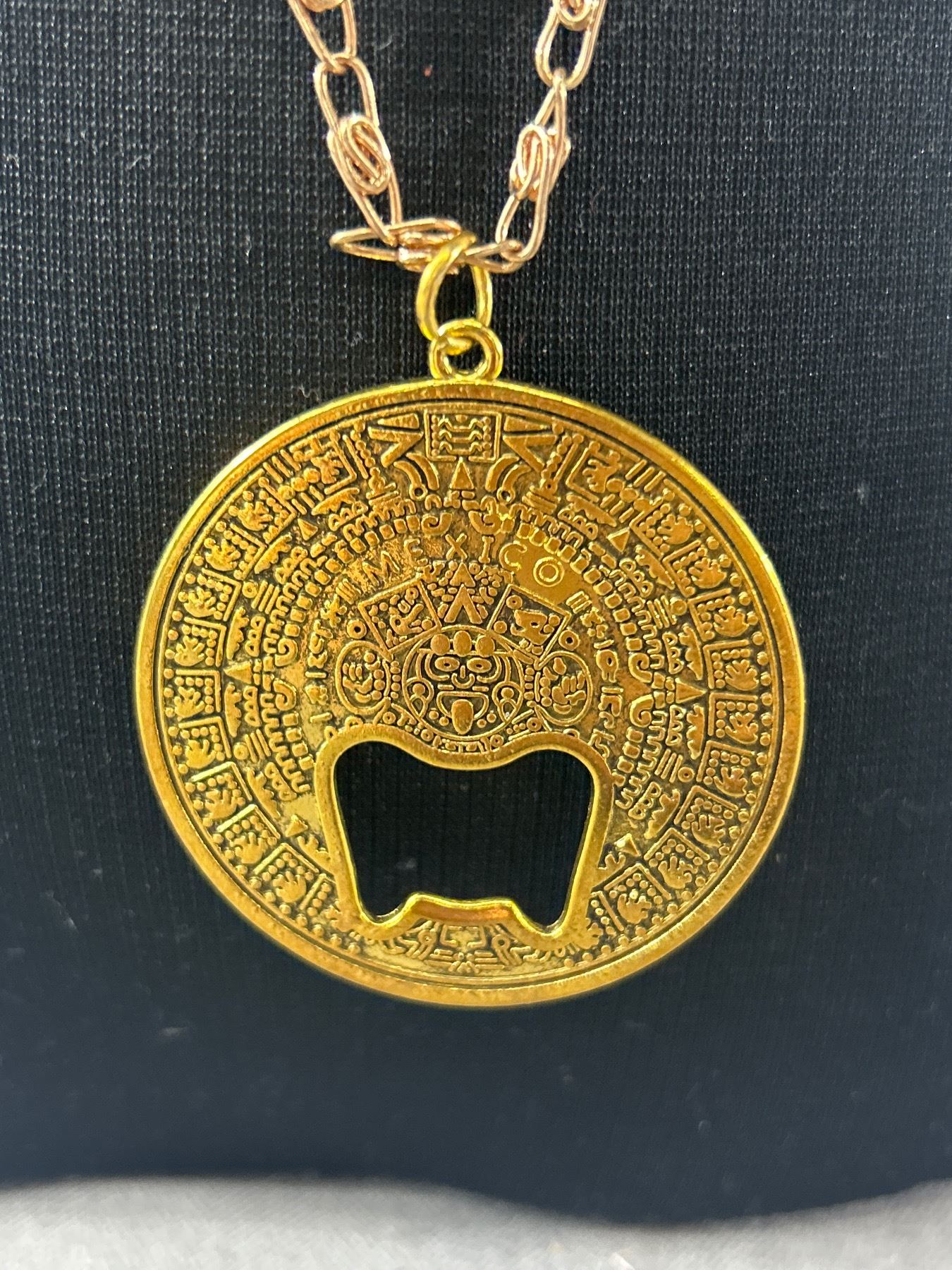 Exceptional Mexican Pendant w/ Gold Plated Chain Necklace