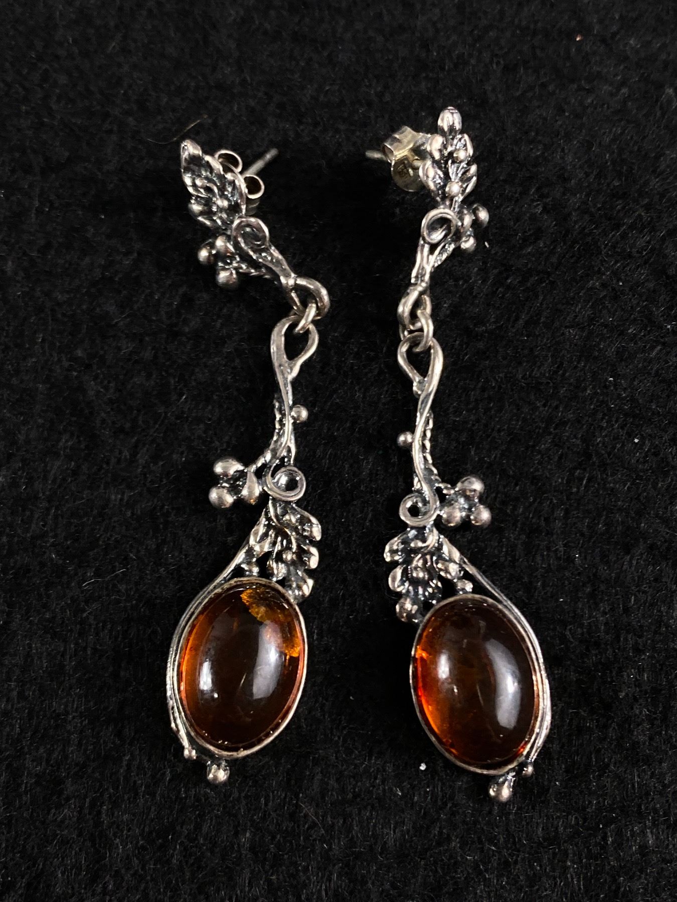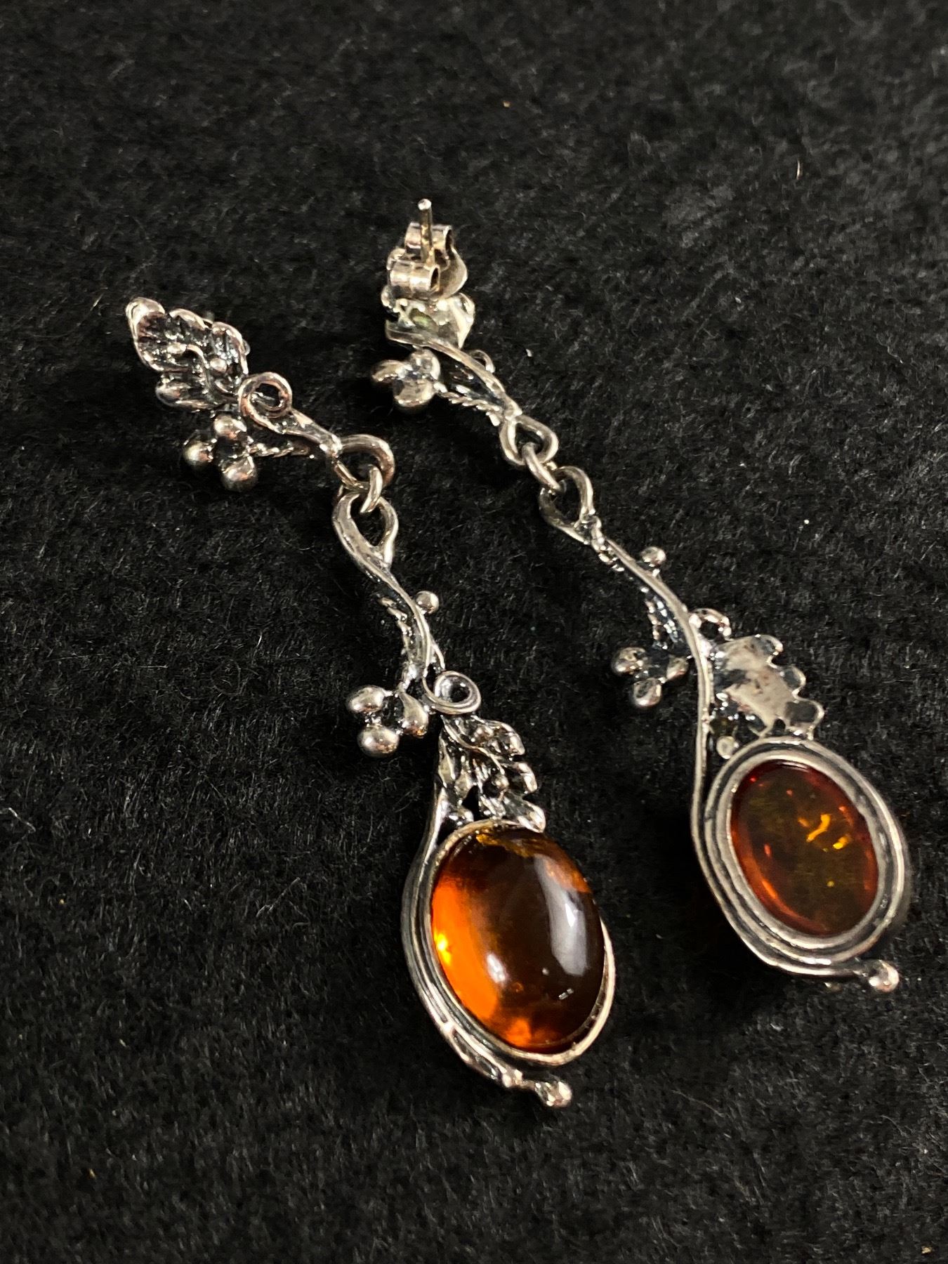 Exceptional Pair of Sterling & Amber Teardrop Earrings