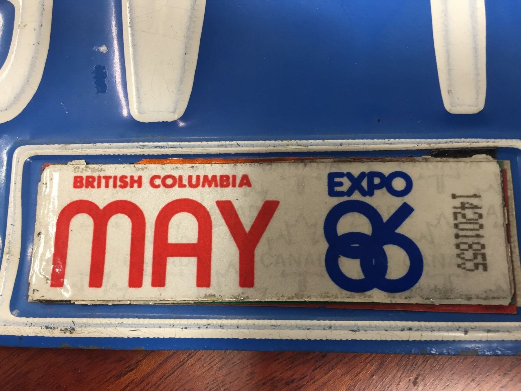 Expo 86 BC License Plates. Last Year of the Blue Plates.