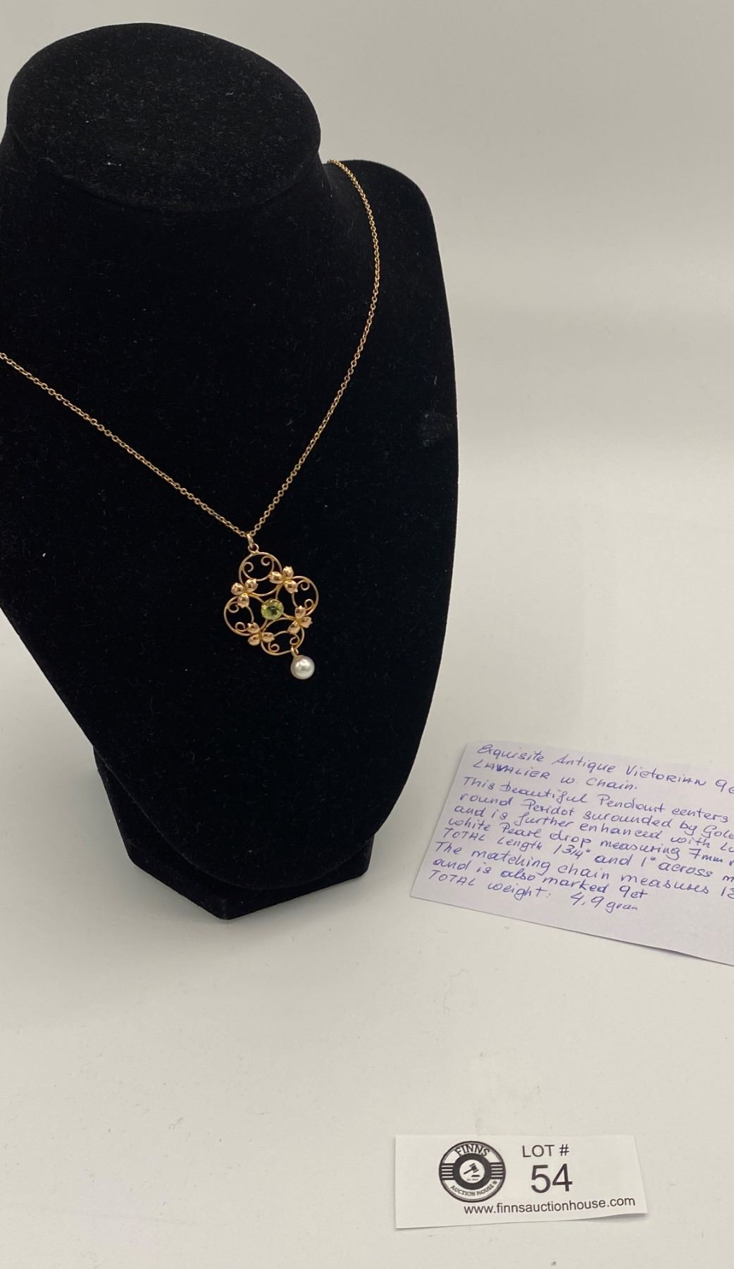 Exquisite Antique Victorian 9k Gold Lavalier With Chain