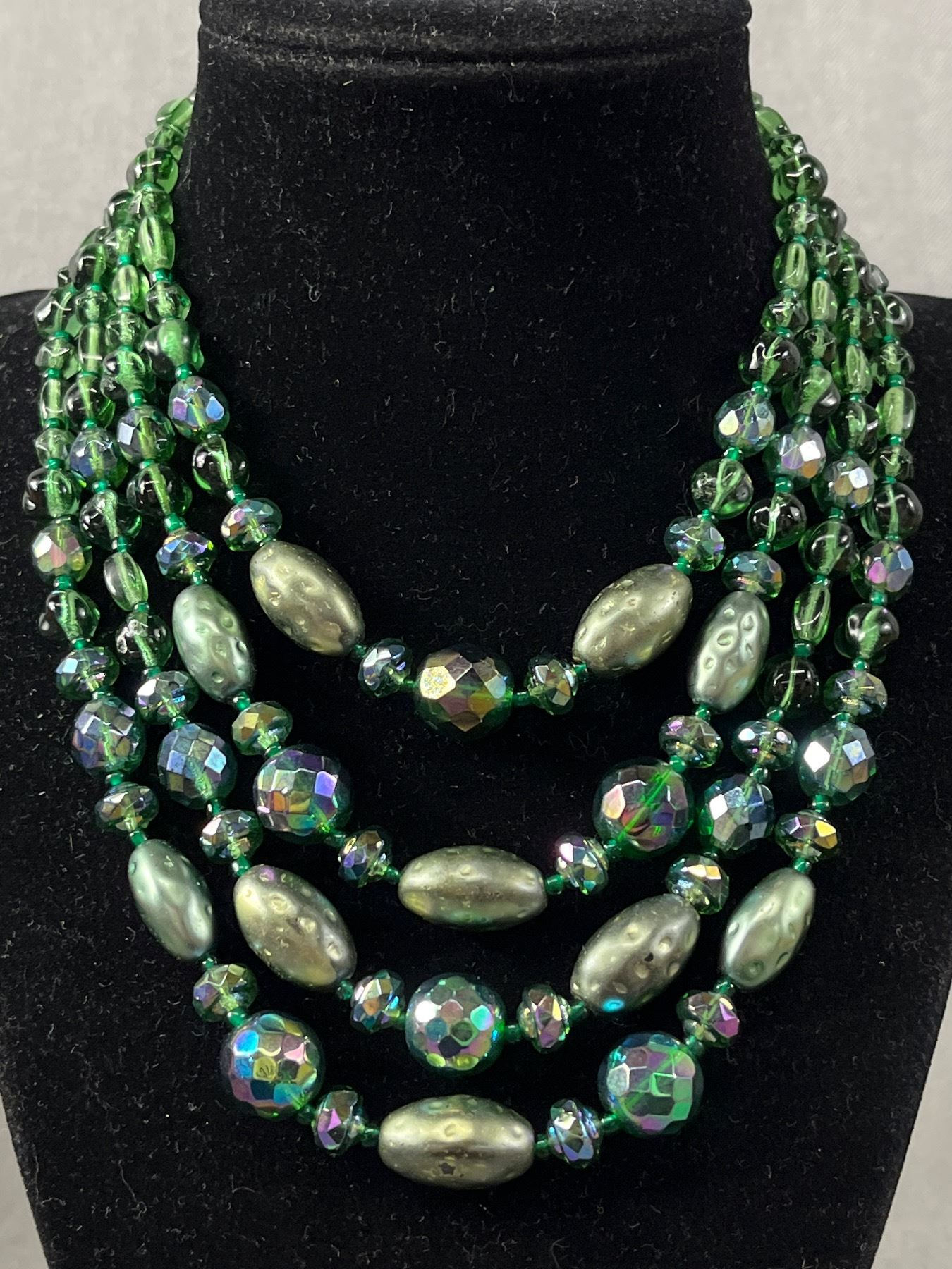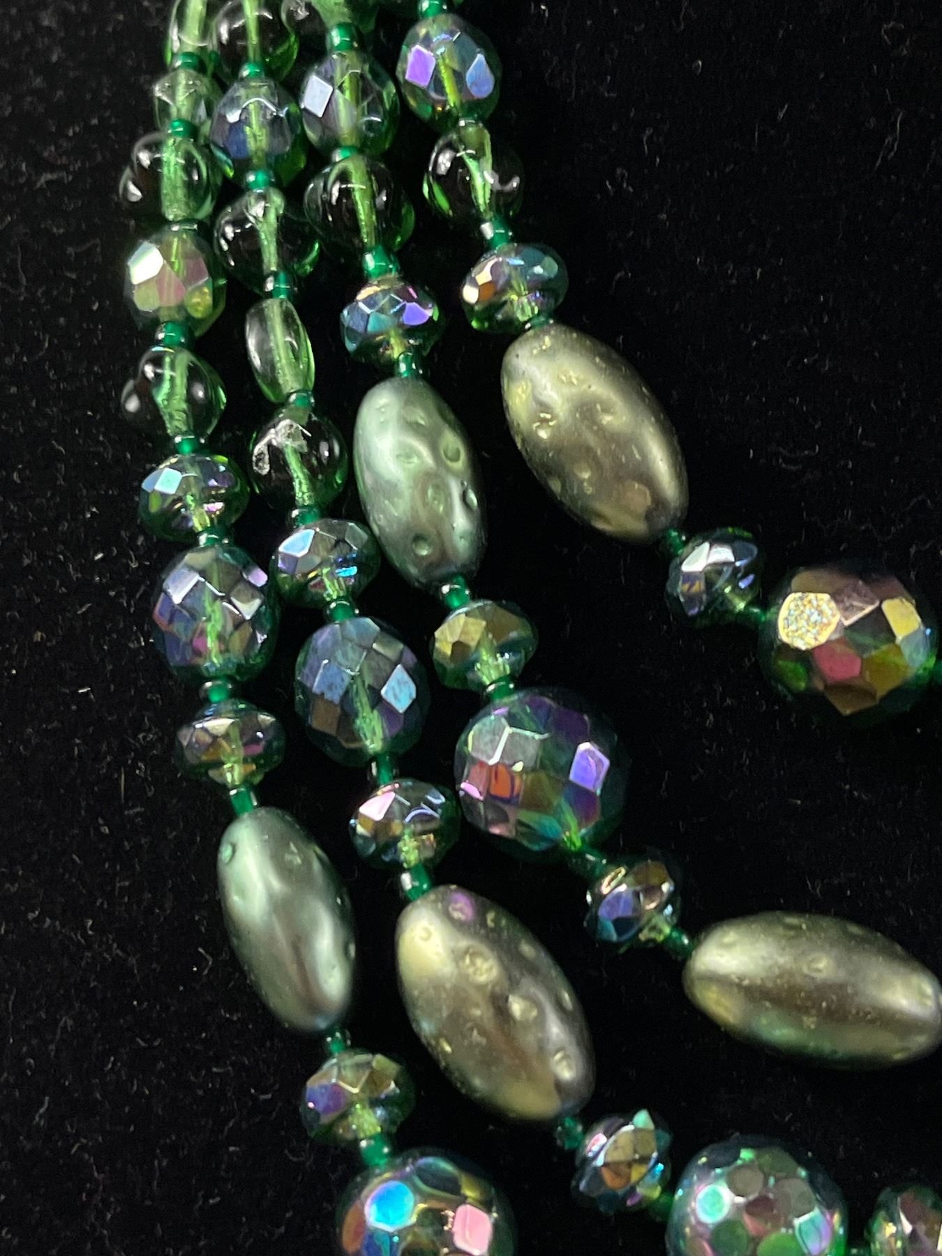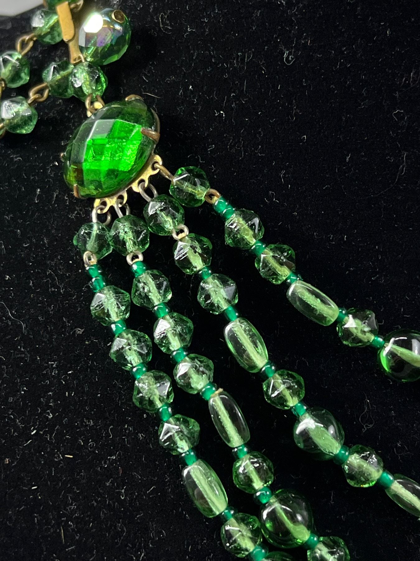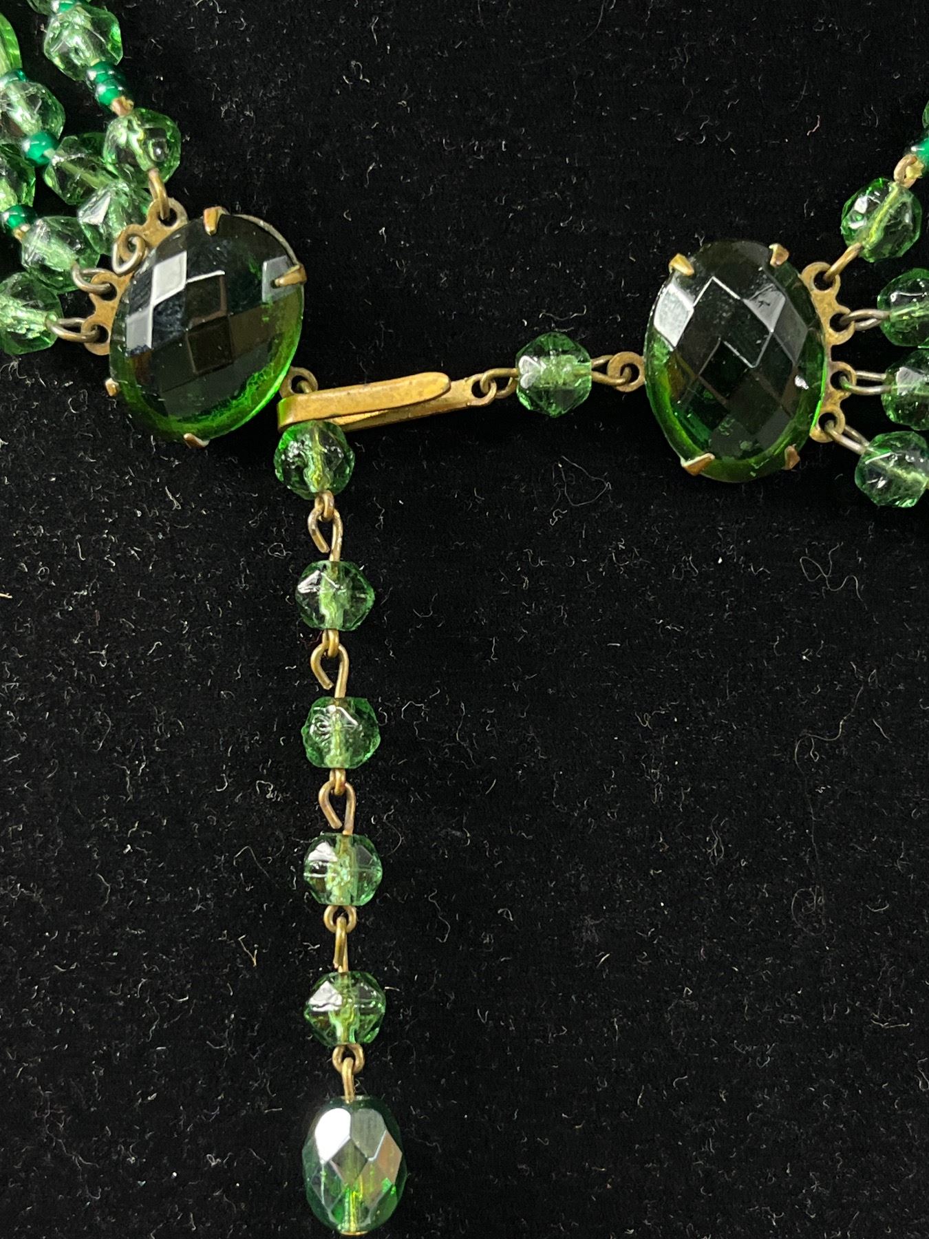 Exquisite Old Enameled Green Necklaces Signed W. Germany Matching Clasp