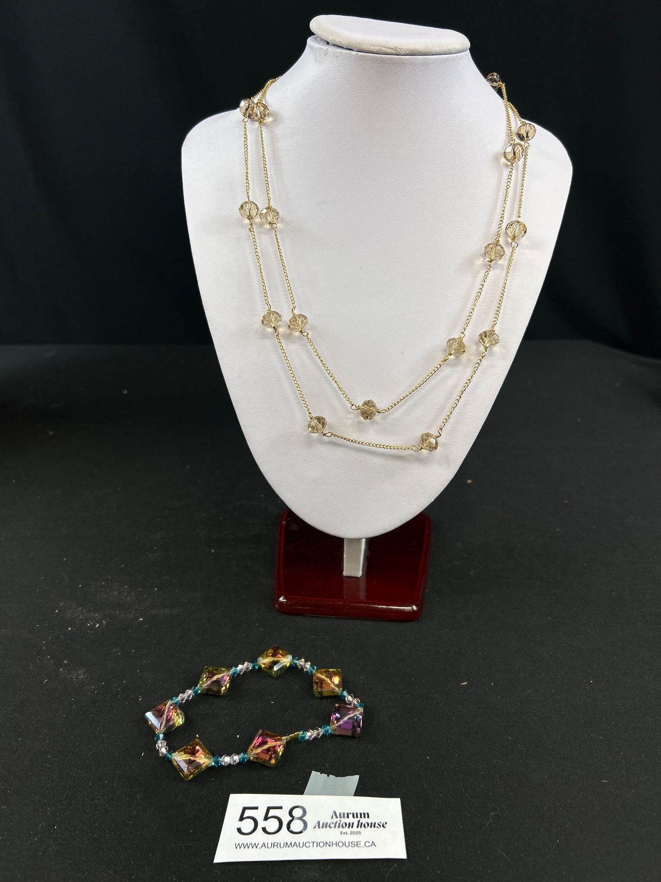 Extra Length (45") Sparkling Crystal Beads Necklace, Designer Mark. + Crytal Bracelet