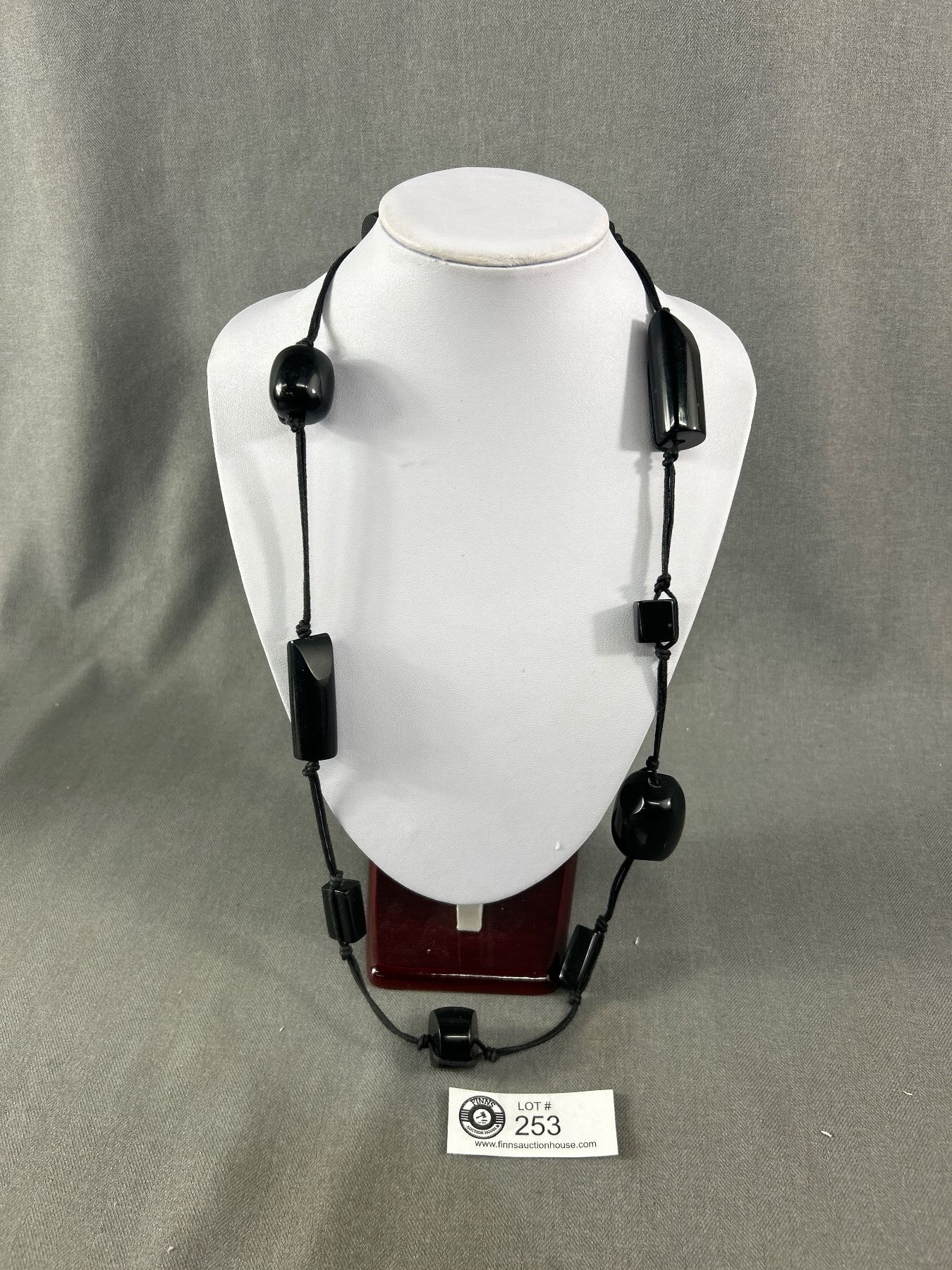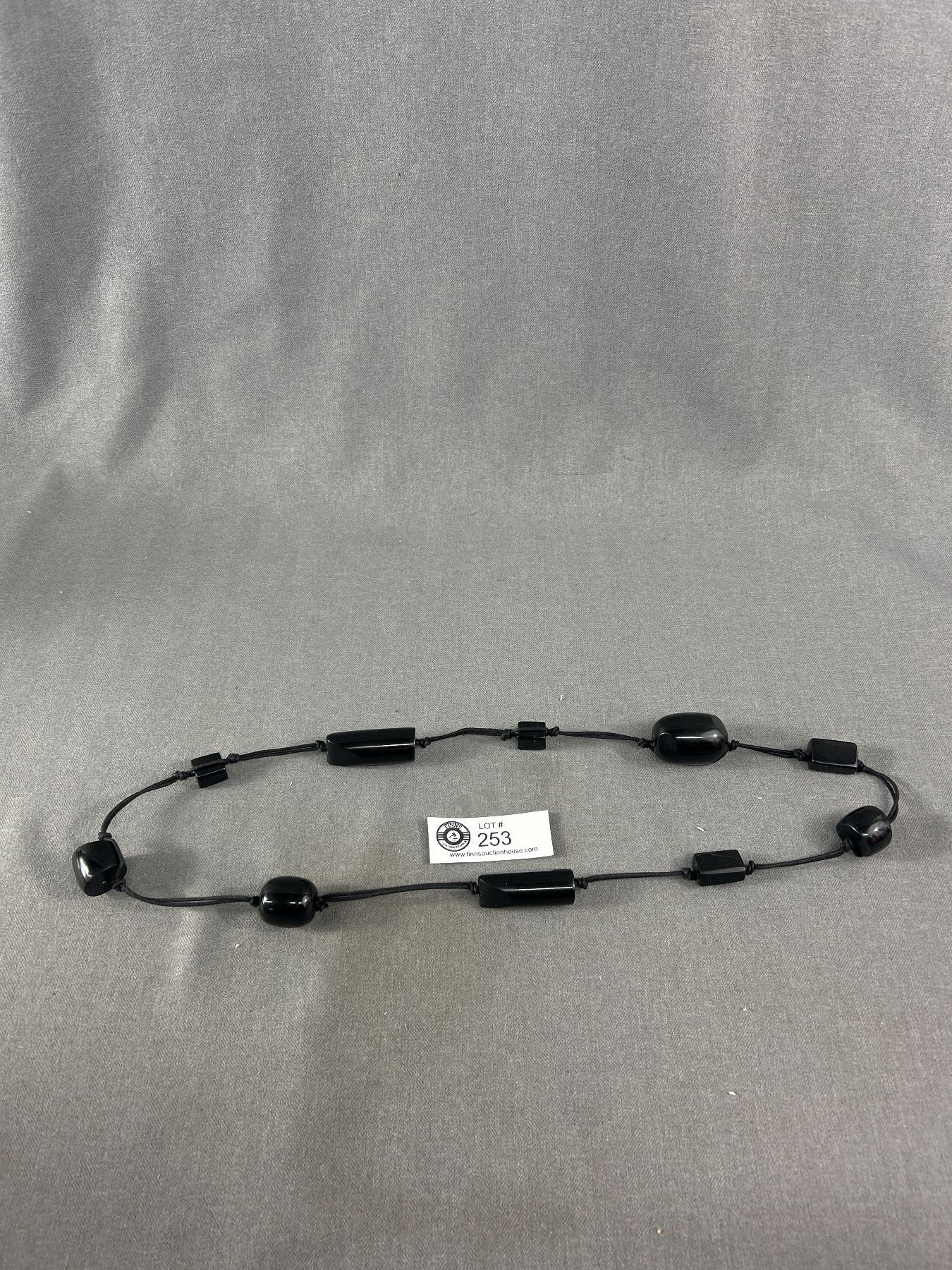 Extra Length Black Bakelite Dr Lucite Beads Necklace