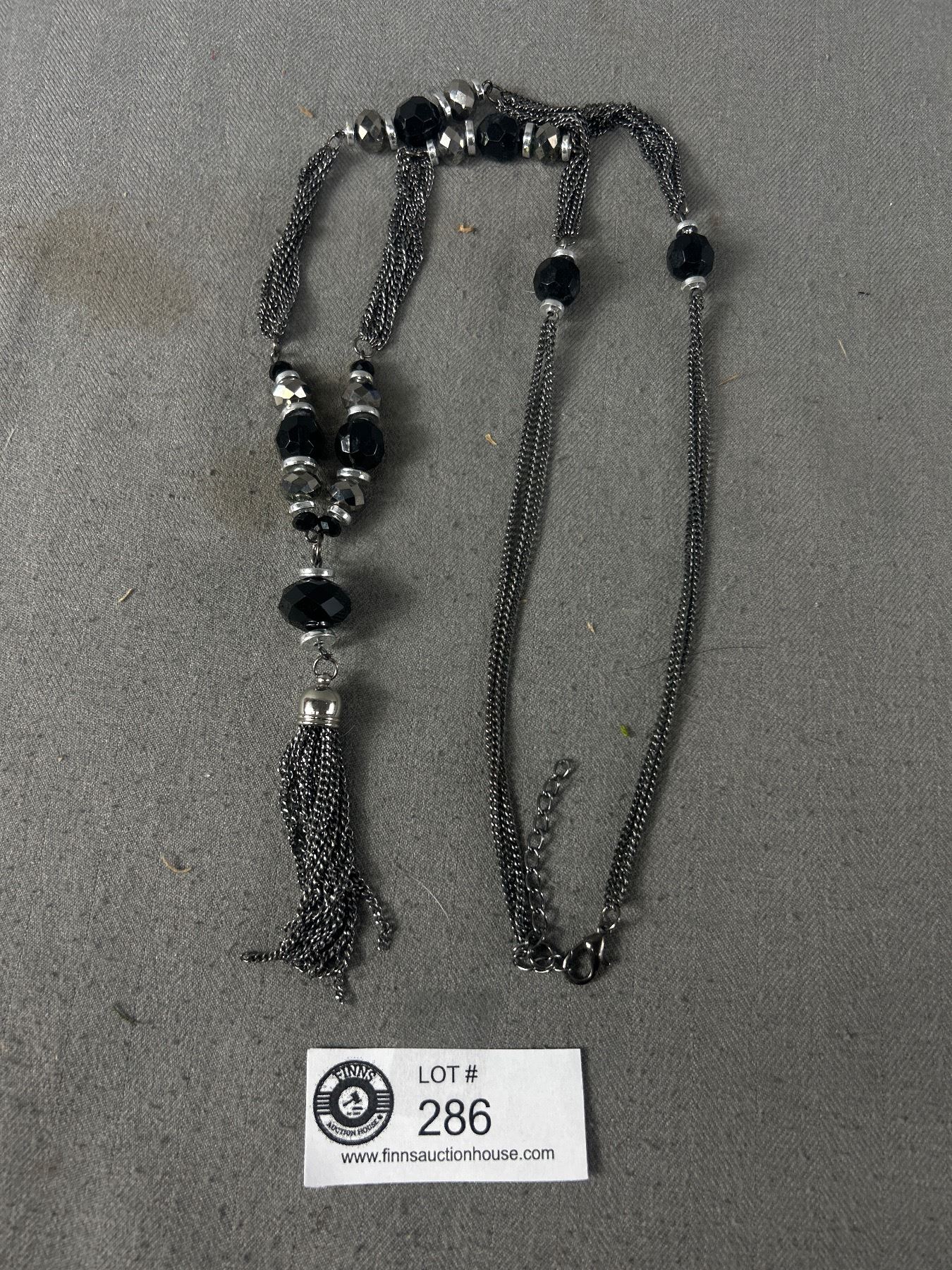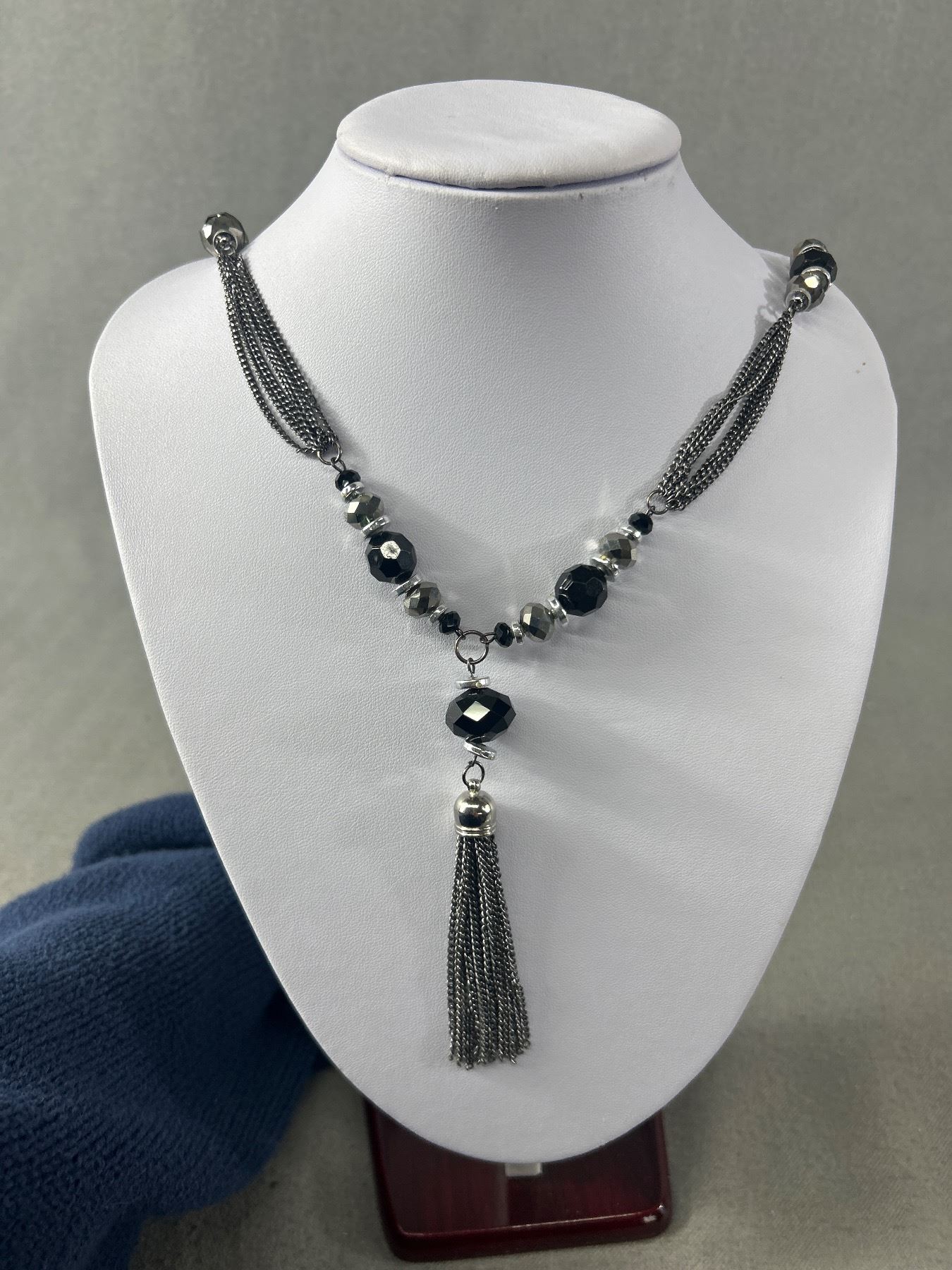 Extra Length Faceted Crystal Beads w/ Chain Necklace w/ Tassel