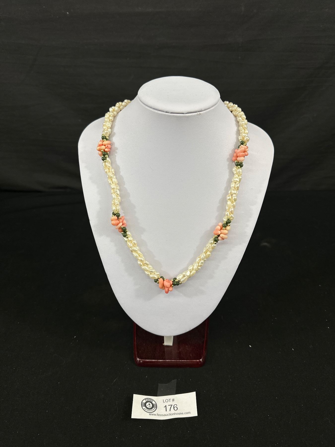 Extra Long Genuine Pearl & Coral Bead Necklace