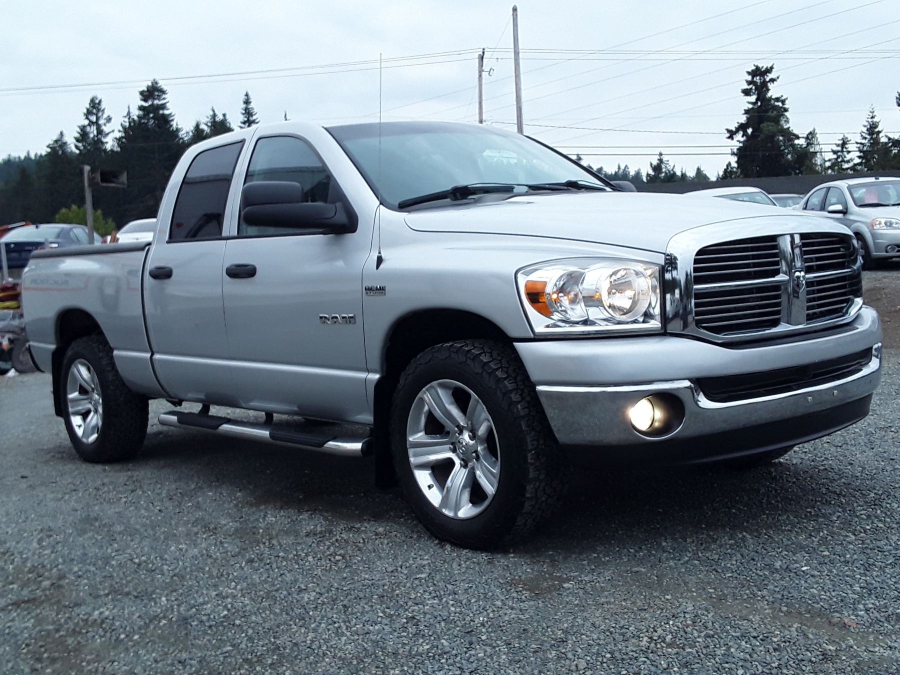 Automatic transmission and HEMI 5.7 Litre Engine, 8 cylinder , Four Wheel Drive, 202188 KilometersSilver, 6 PassengerDeclarations - , Damage Claims, 2 CLAIMS TOTAL $3480 , -Power Steering, Power Brakes, Intermittent Wipers, Dual Air Bag, AM/FM Stereo , Rear Defroster, Bucket Seats, Anti Lock Brakes, Front Disc Brakes-Air Conditioning, Power Windows, Power Locks, Keyless Entry, Tilt Steering, Cruise Control, Alloy Wheels, Anti Theft, Power Sunroof, CD Player, CD Stacker, Leather Seats, Power Seats, Heated Seats , Information Center, Steering Wheel Controls, Fog Lights, Box Liner, Tow Package, Running Boards, Short Box, Good Tire Tread, Auction Notes : Infiniti Audio, Power Rear Sliding Window, Tonneau Cover With Keys, Aftermarket Air Intake, Full Size Matching Spare Wheel, BFGoodrich All-Terrain K02 Tires With Great Tread, Consignor Notes: Within The Last 6 Months, Newer Brakes Front+ Rear, New Ball Joint, New Radiator, $450 Transmission Service, 2 Spare Tires, 2 Spare Tires