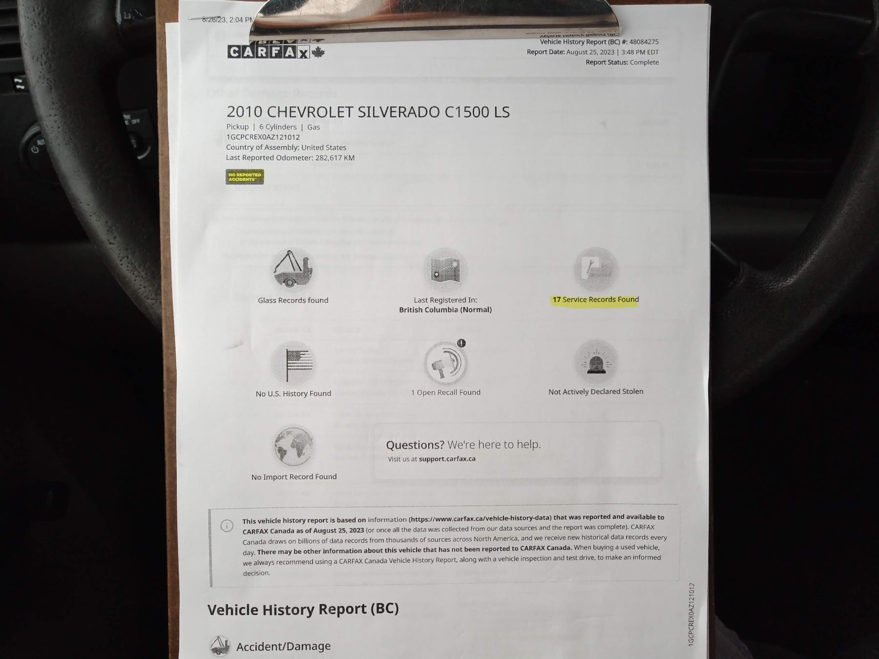 Automatic transmission and 4.3 Litre Engine, 6 Cylinder, Rear Wheel Drive, 283,021 KMSSilver, 3 PassengerDeclarations - Previously Out of Province, ONT , Currently BC Registered, No Reported Accidents,Power Steering, Power Brakes, Intermittent Wipers, Dual Air Bag, AM/FM Stereo , Rear Defroster, Bucket Seats, Anti Lock Brakes, Front Disc Brakes-Air Conditioning, Power Locks, Keyless Entry, Tilt Steering, Cruise Control, Anti Theft, CD Player, Bluetooth, Aftermarket Stereo, Information Center, Traction Control, Box Liner, Tow Package, Running Boards, Short Box, Chip / Crack in windshield Auction Notes : Apple Car Play, Tow/Haul Mode, Truck Hero Pro X15 Box Cover, CarFax Shows Good Service History (17 Records)
