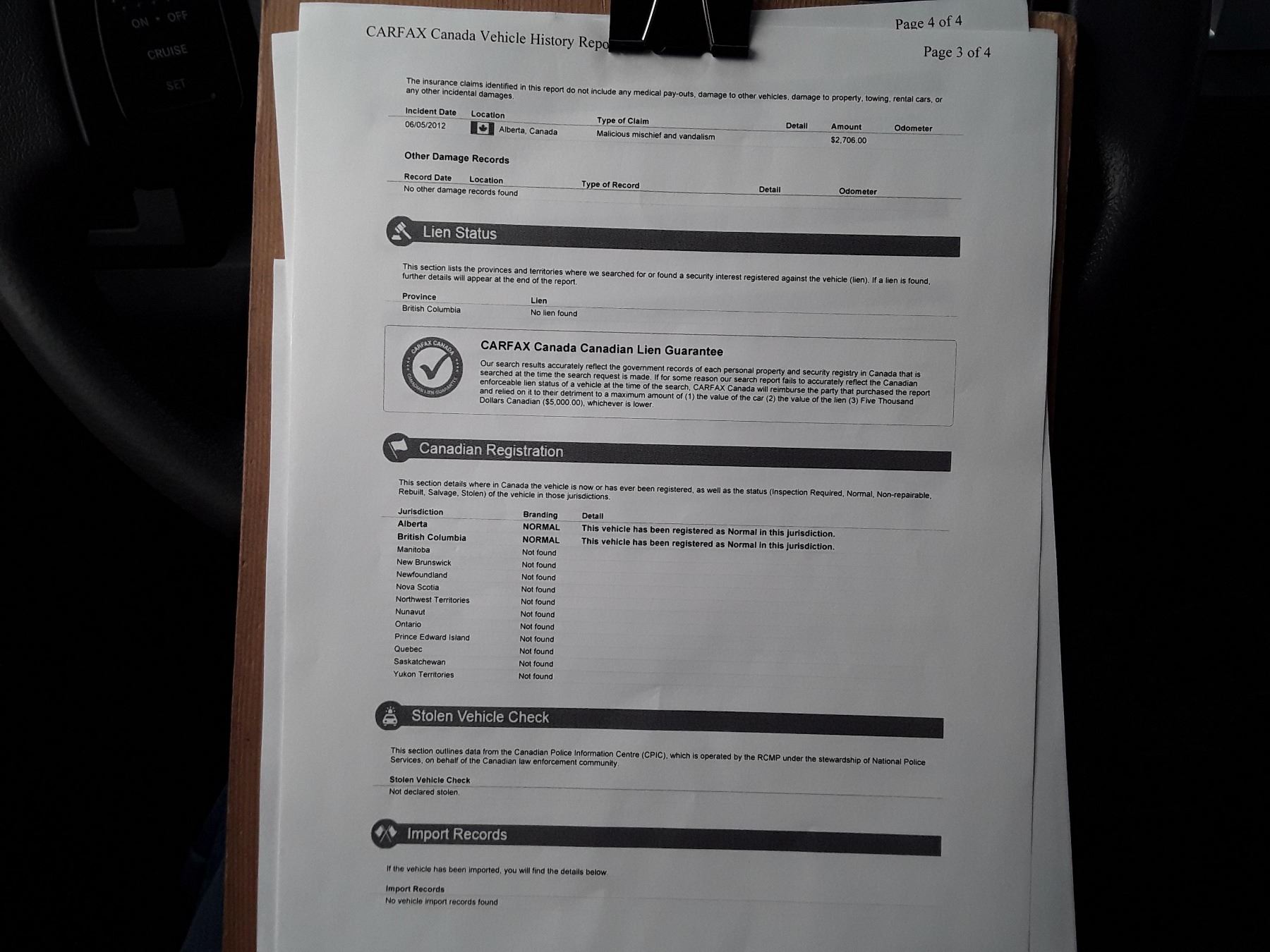 Declarations -Previous Out of Province, AB , Currently BC Registered,, Damage Claims, $2700 VAND ,