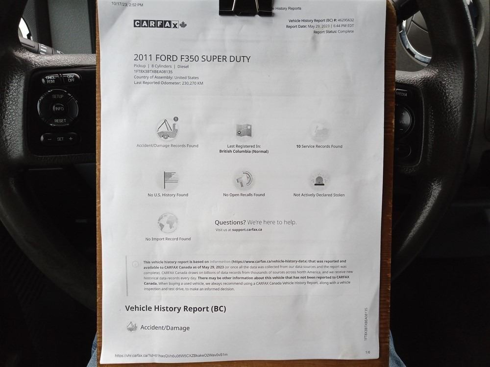 Automatic transmission and POWER STROKE TURBO 6.7 Litre Engine, Diesel 8 Cylinder, Four Wheel Drive, 233084 KMWhite, 6 PassengerDeclarations - , Damage Claims, 4 CLAIMS TOTAL $7640 , Power Steering, Power Brakes, Intermittent Wipers, Dual Air Bag, AM/FM Stereo , Rear Defroster, Bucket Seats, Anti Lock Brakes, Front Disc Brakes-Air Conditioning, Power Windows, Power Locks, Keyless Entry, Tilt Steering, Alloy Wheels, Anti Theft, CD Player, Information Center, Steering Wheel Controls, Power Adjustable Pedals, Fog Lights, Box Liner, Tow Package, Trailer Brake Controller, Running Boards, Long Box, Power Mirrors Auction Notes : Newer Tires, Long Box
