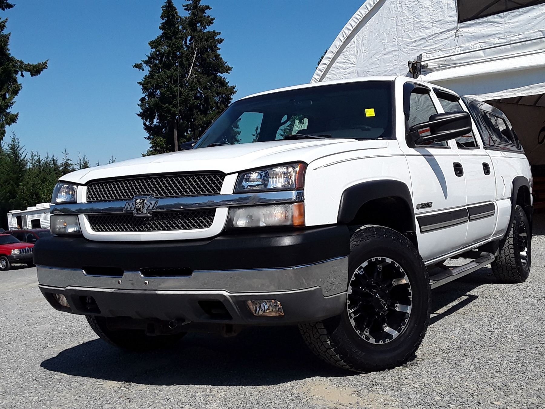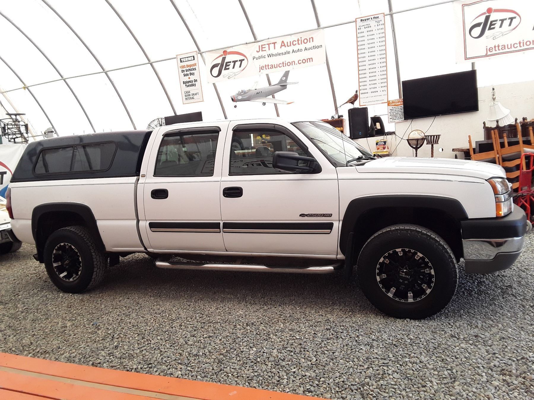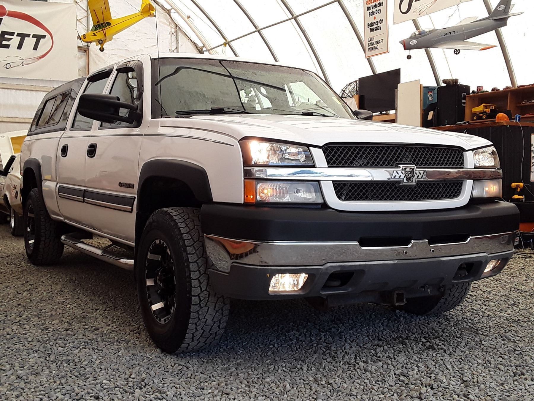 Automatic transmission and 6.O Litre Engine, 8 cylinder , Four Wheel Drive, 362948 KilometersWhite, 6 PassengerDeclarations - No Reported Accidents, Ex Lease, Power Steering, Power Brakes, , Intermittent Wipers, Dual Air Bag, AM/FM Stereo , Rear Defroster, Bucket Seats, Anti Lock Brakes, Front Disc Brakes-Air Conditioning, Power Locks, Tilt Steering, Cruise Control, Alloy Wheels, Anti Theft, Bluetooth, Aftermarket Stereo, Fog Lights, Canopy, Tow Package, Trailer Brake Controller, Running BoardsAuction Notes : Custom Exhaust, Apple Car Play, Needs Rear Brakes Soon