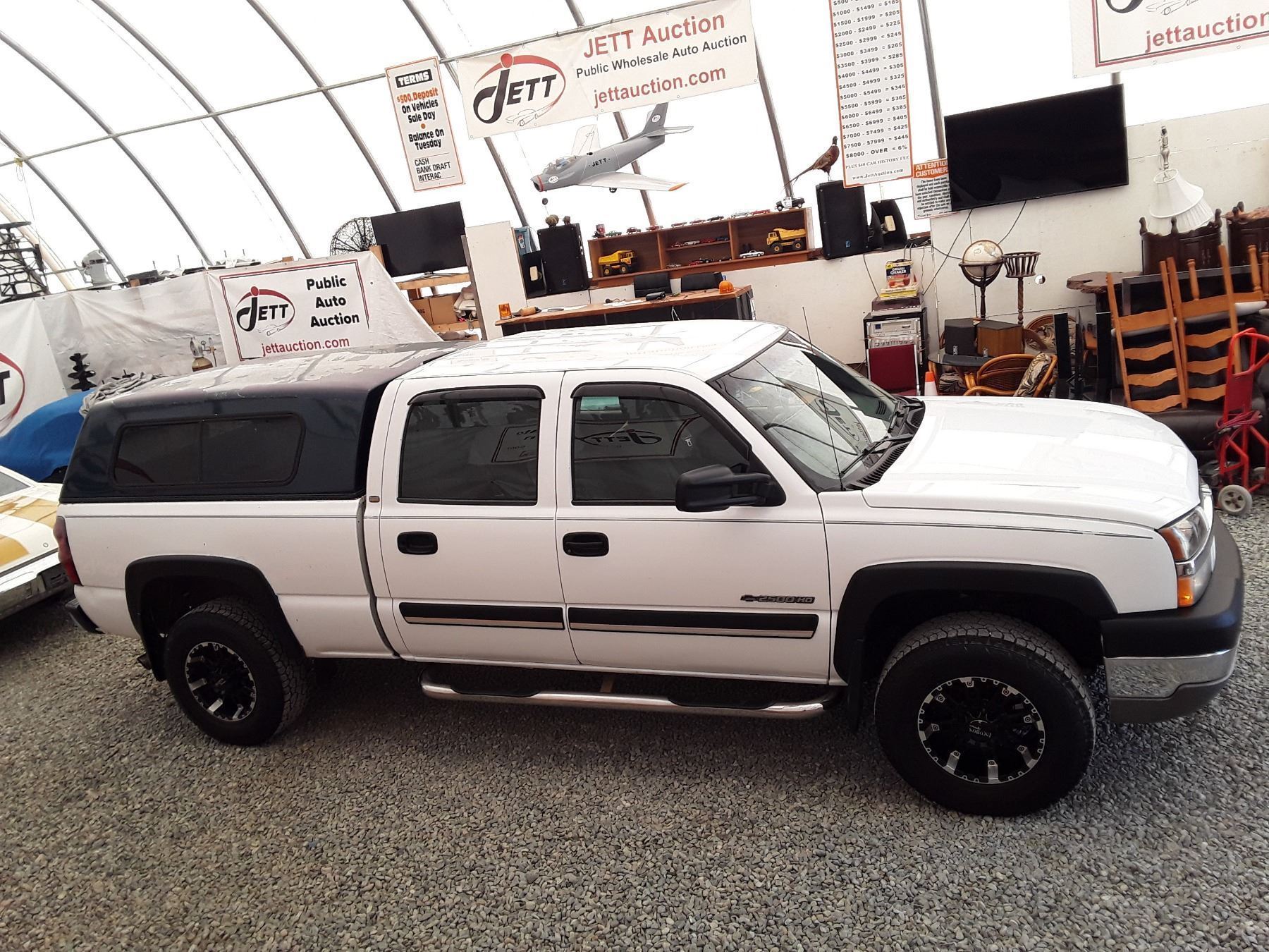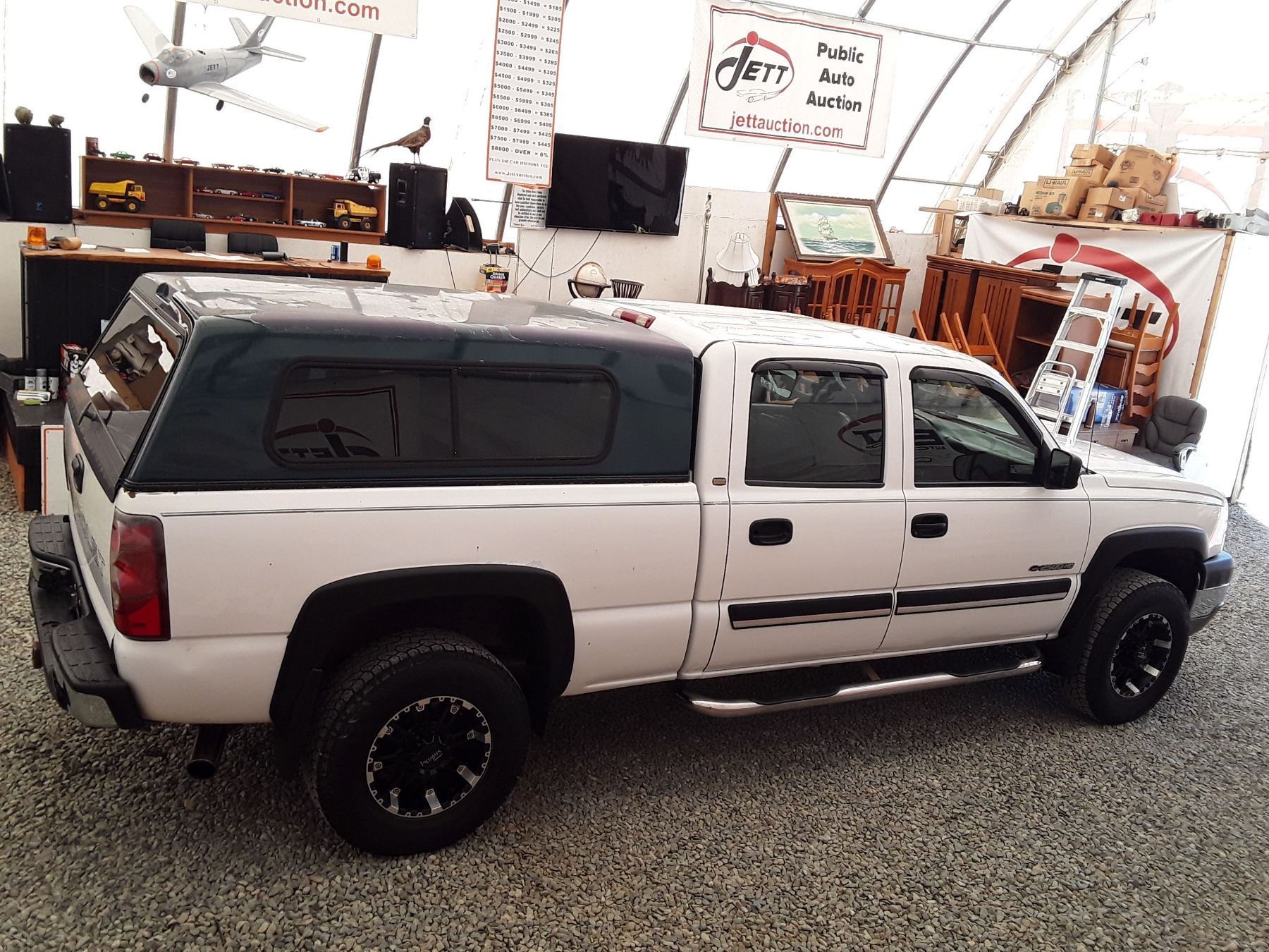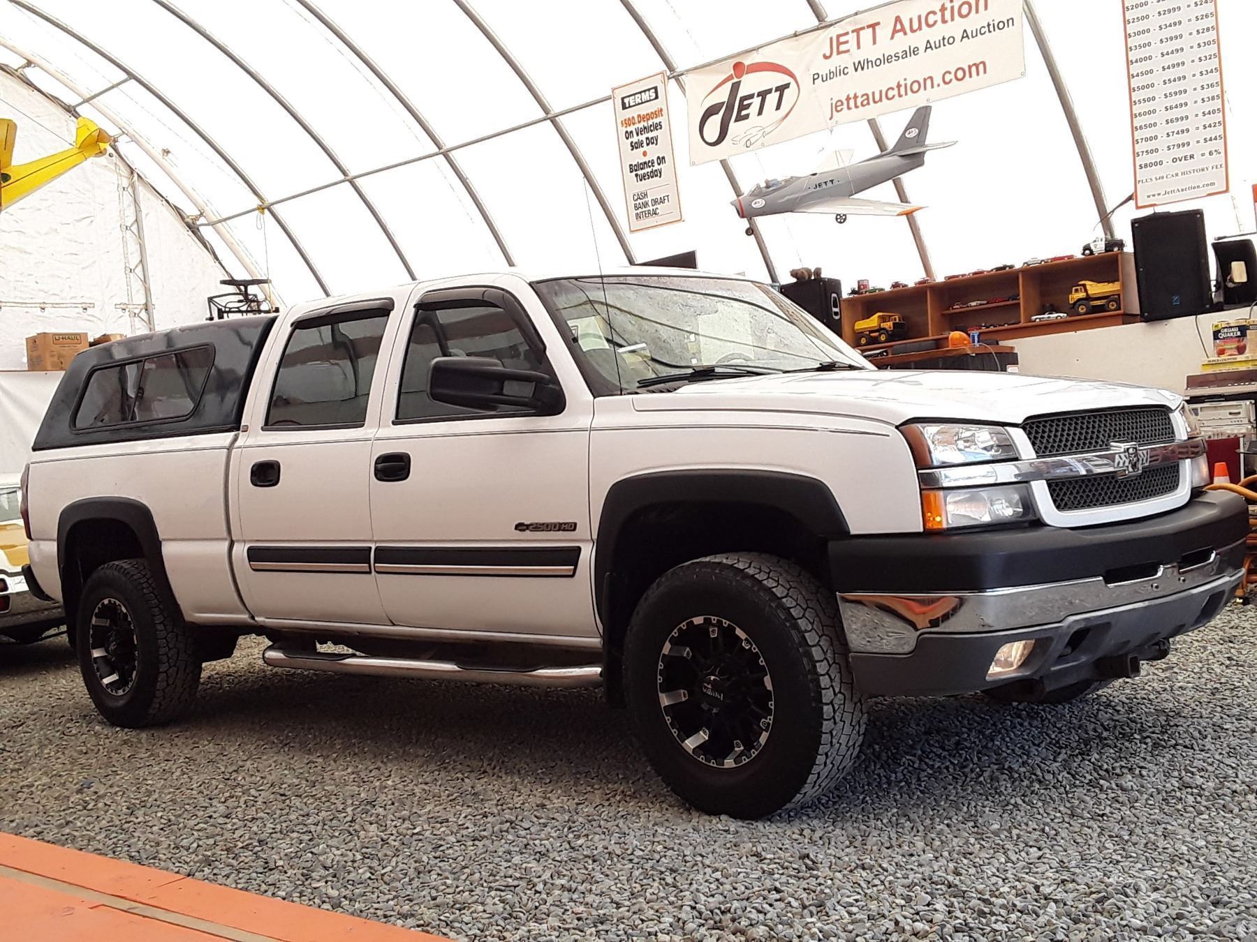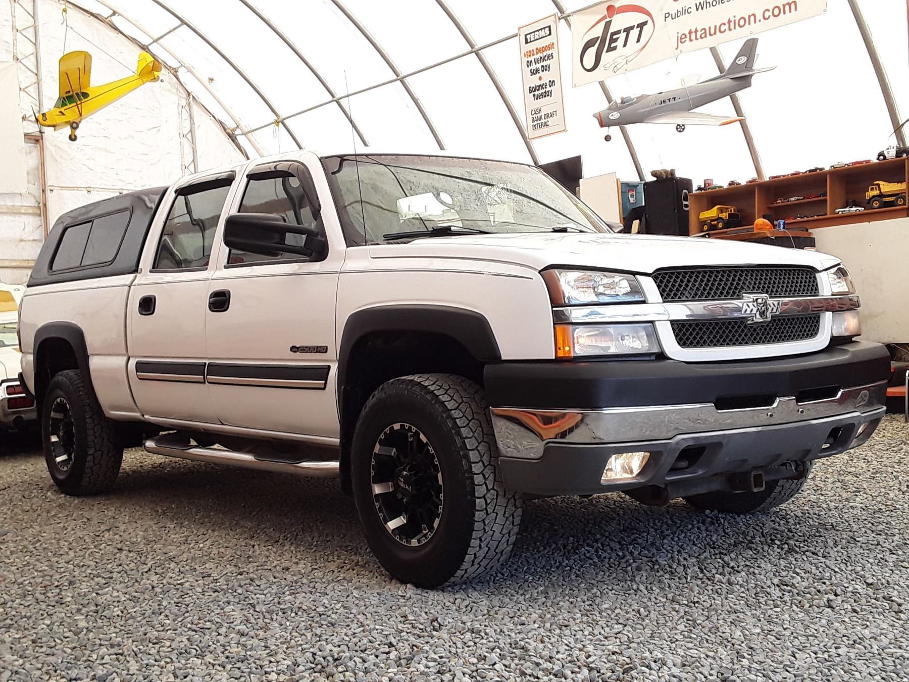 Automatic transmission and 6.O Litre Engine, 8 cylinder , Four Wheel Drive, 362948 KilometersWhite, 6 PassengerDeclarations - No Reported Accidents, Ex Lease, Power Steering, Power Brakes, , Intermittent Wipers, Dual Air Bag, AM/FM Stereo , Rear Defroster, Bucket Seats, Anti Lock Brakes, Front Disc Brakes-Air Conditioning, Power Locks, Tilt Steering, Cruise Control, Alloy Wheels, Anti Theft, Bluetooth, Aftermarket Stereo, Fog Lights, Canopy, Tow Package, Trailer Brake Controller, Running BoardsAuction Notes : Custom Exhaust, Apple Car Play, Needs Rear Brakes Soon