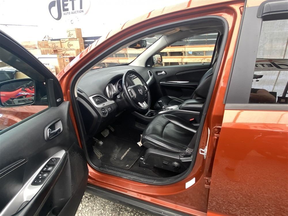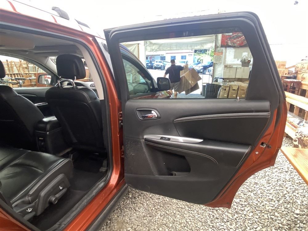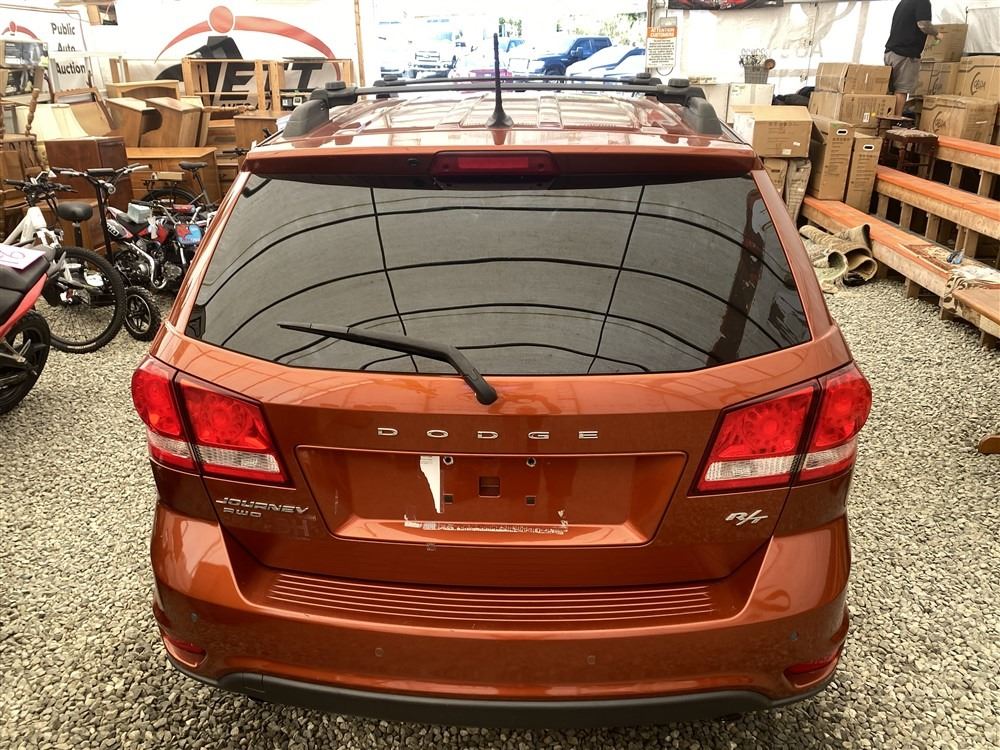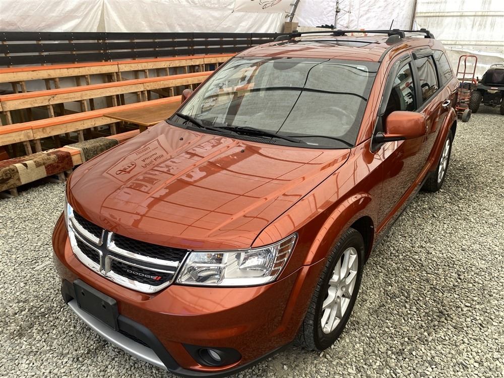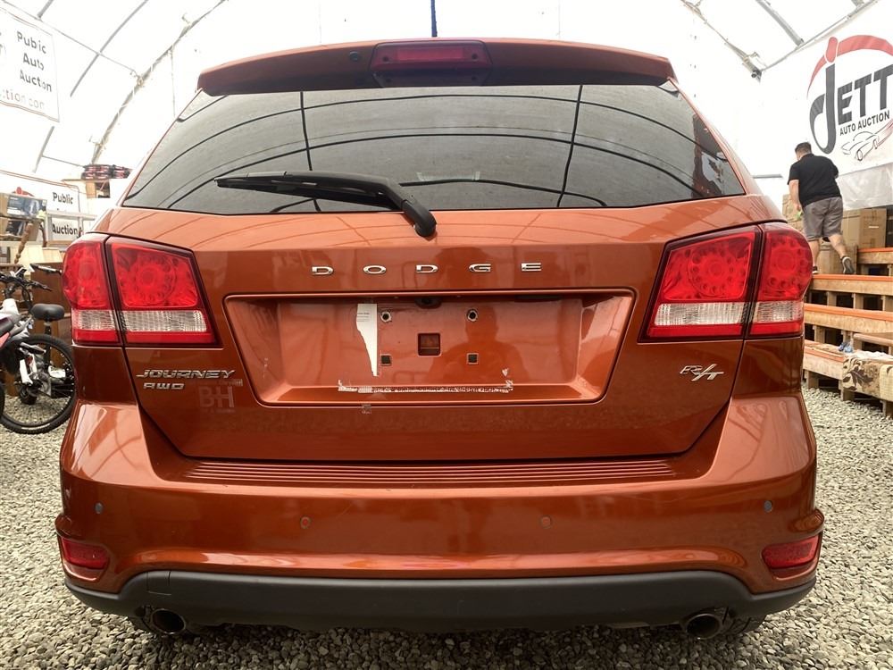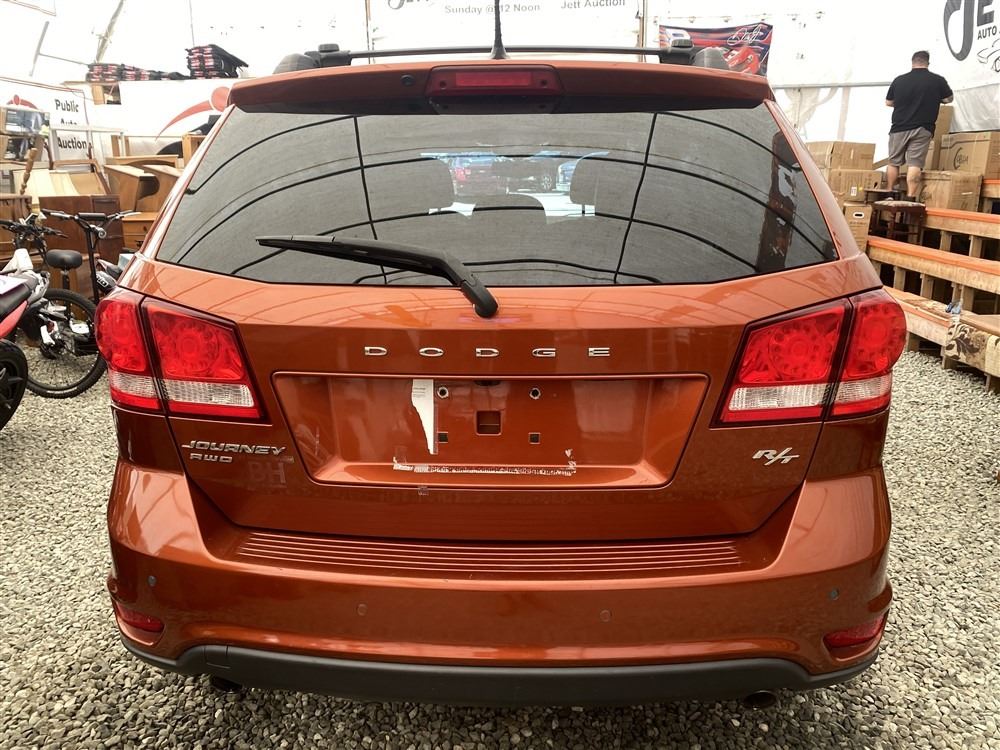 2014 DODGE JOURNEY R/T, ORANGE, 210592 KMS, 3.6L, 6 CYLINDER, GASOLINE, AUTOMATIC WITH TIPTRONIC, TRANSMISSION, ALL WHEEL DRIVE, 7 PASSENGER. AIR CONDITIONING, POWER WINDOWS, POWER LOCKS, KEY-LESS ENTRY, TILT STEERING, CRUISE CONTROL, ALLOY WHEELS, ANTI THEFT, DUAL AIR BAGS, POWER SUNROOF, CD PLAYER, BLUETOOTH, LEATHER SEATS, POWER SEATS, HEATED SEATS, HEATED MIRRORS, INFOTAINMENT CENTER, NAVIGATION, BACK UP CAMERA, PARKING SENSORS, TRACTION CONTROL, REMOTE START, REAR HEAT AND AIR, DUAL ZONE CLIMATE, STEERING WHEEL CONTROLS, FOG LIGHTS, ROOF RACK, POWER MIRRORS, PUSH-BUTTON START , TIRE PRESSURE MONITORING SYSTEM (TPMS), REAR-SEAT ENTERTAINMENT SYSTEM. DECLARATIONS: 1 ACCIDENTS 2 GLASS CLAIM, TOTALING $2961. GOOD SERVICE HISTORY, CARFAX SHOWING 27 RECORDS.
