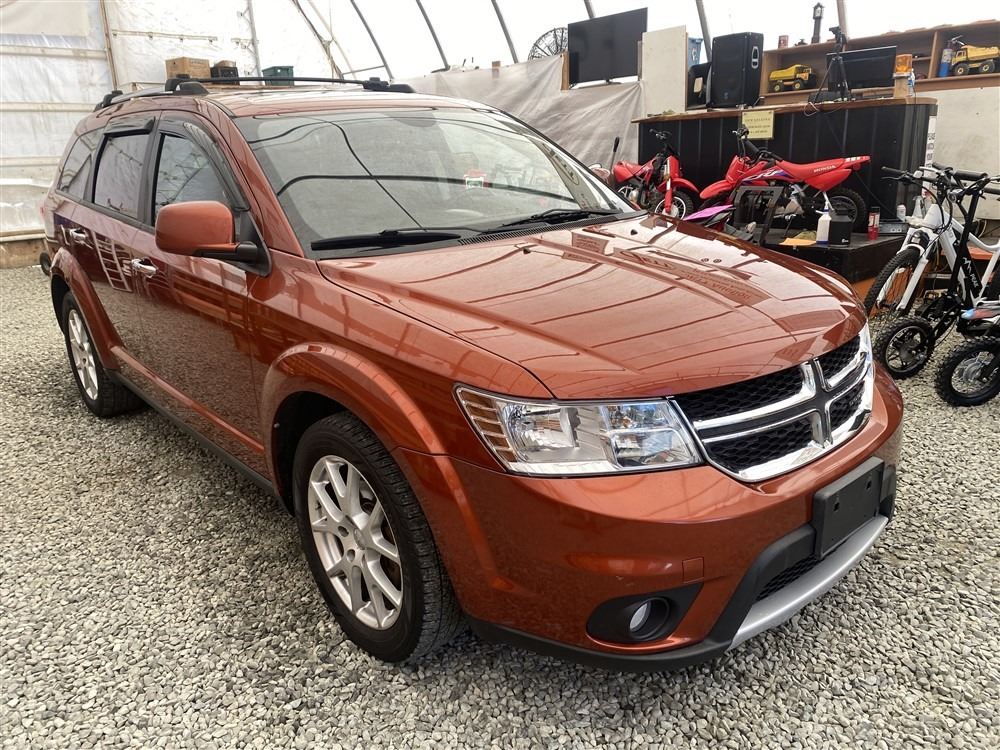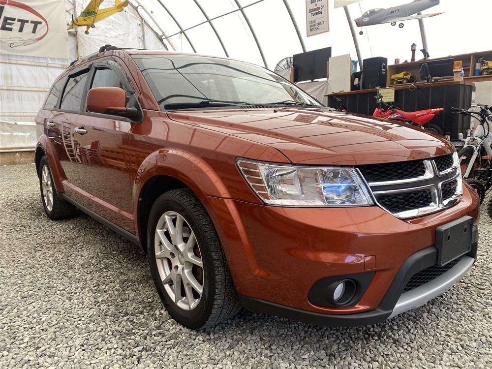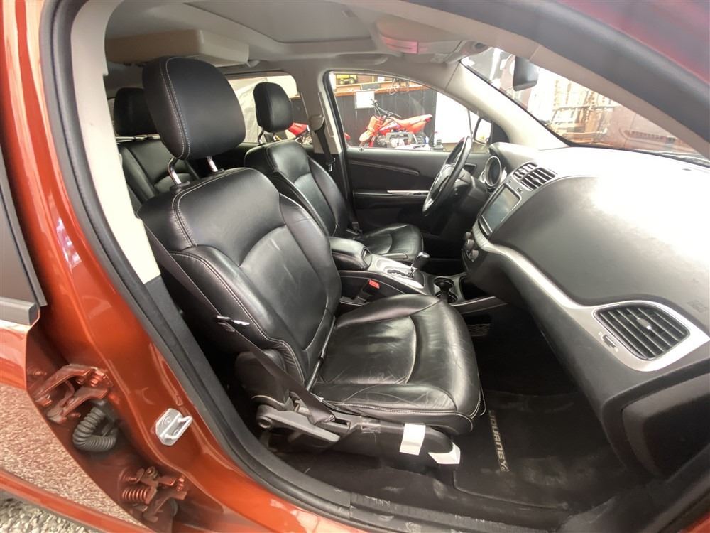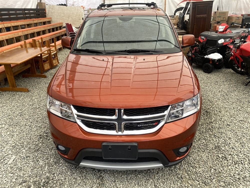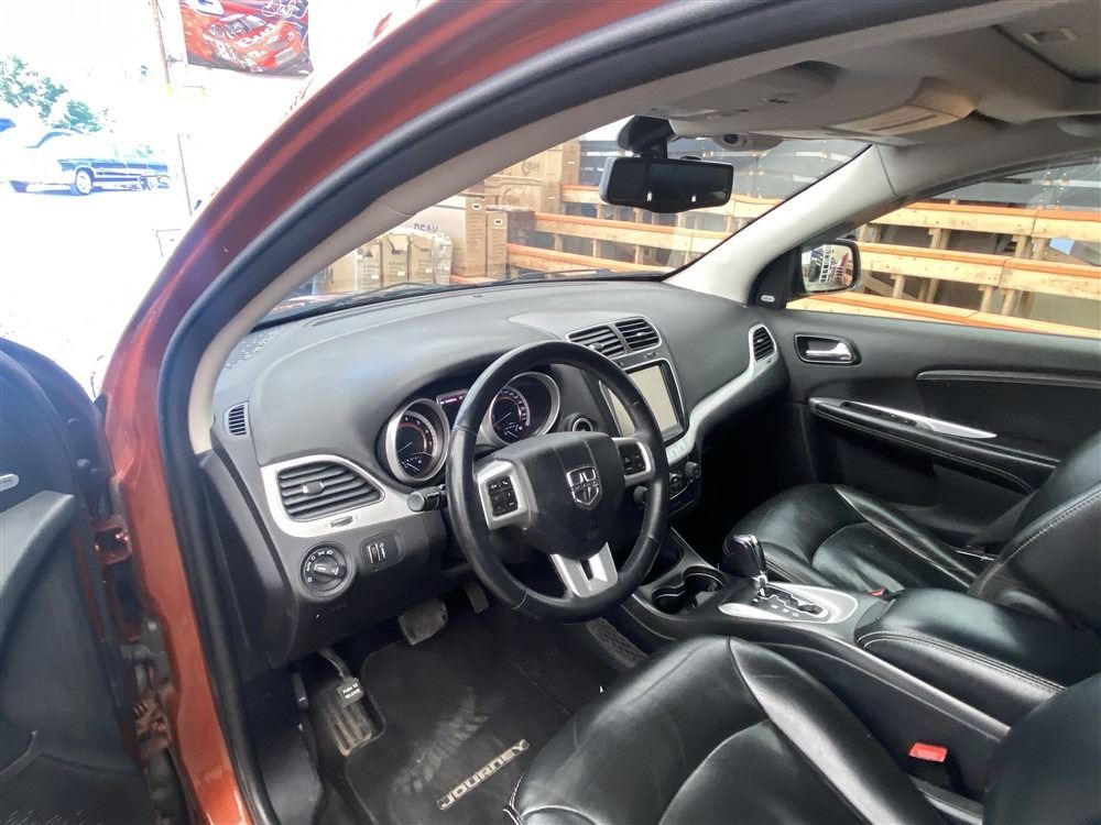 2014 DODGE JOURNEY R/T, ORANGE, 210592 KMS, 3.6L, 6 CYLINDER, GASOLINE, AUTOMATIC WITH TIPTRONIC, TRANSMISSION, ALL WHEEL DRIVE, 7 PASSENGER. AIR CONDITIONING, POWER WINDOWS, POWER LOCKS, KEY-LESS ENTRY, TILT STEERING, CRUISE CONTROL, ALLOY WHEELS, ANTI THEFT, DUAL AIR BAGS, POWER SUNROOF, CD PLAYER, BLUETOOTH, LEATHER SEATS, POWER SEATS, HEATED SEATS, HEATED MIRRORS, INFOTAINMENT CENTER, NAVIGATION, BACK UP CAMERA, PARKING SENSORS, TRACTION CONTROL, REMOTE START, REAR HEAT AND AIR, DUAL ZONE CLIMATE, STEERING WHEEL CONTROLS, FOG LIGHTS, ROOF RACK, POWER MIRRORS, PUSH-BUTTON START , TIRE PRESSURE MONITORING SYSTEM (TPMS), REAR-SEAT ENTERTAINMENT SYSTEM. DECLARATIONS: 1 ACCIDENTS 2 GLASS CLAIM, TOTALING $2961. GOOD SERVICE HISTORY, CARFAX SHOWING 27 RECORDS.