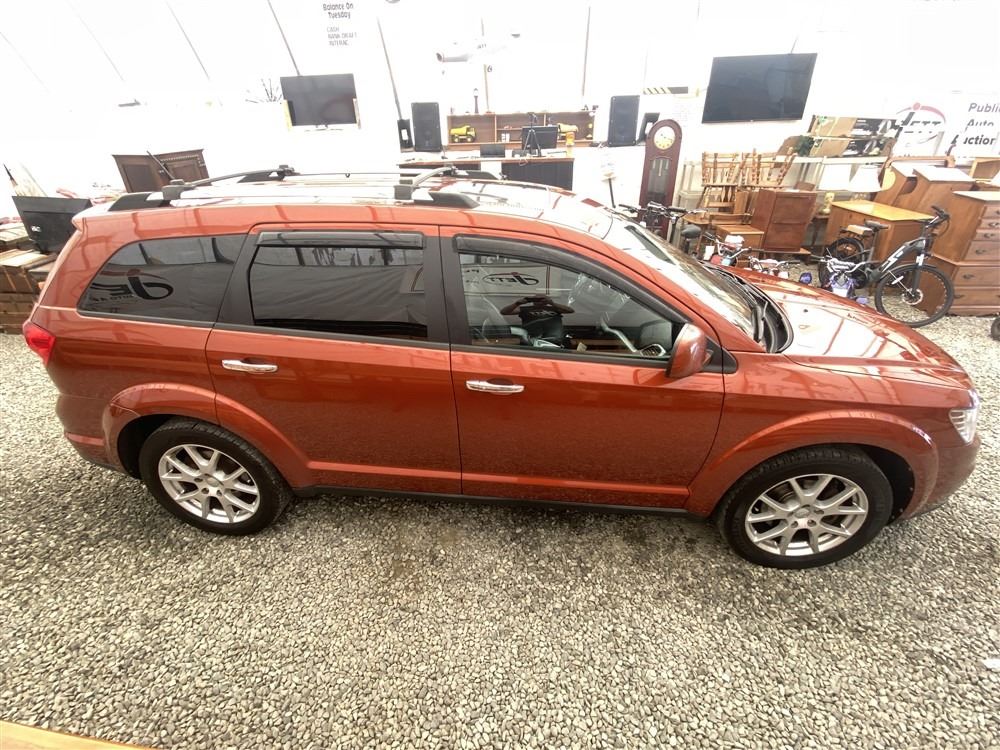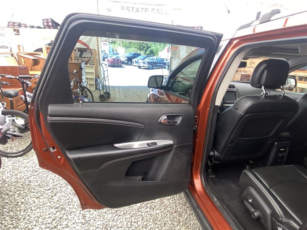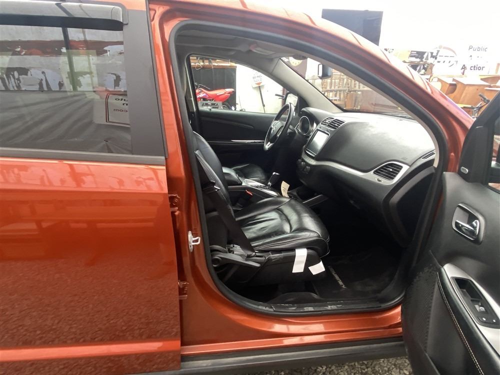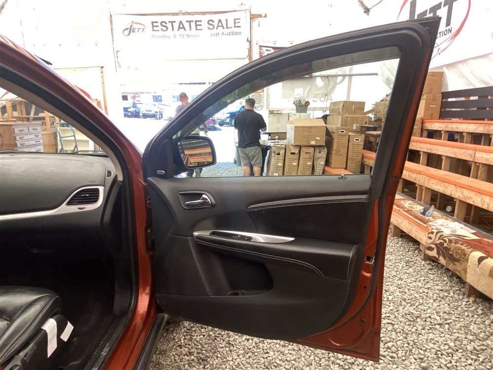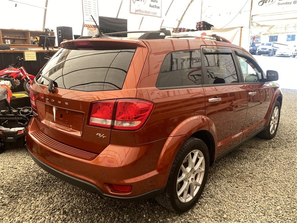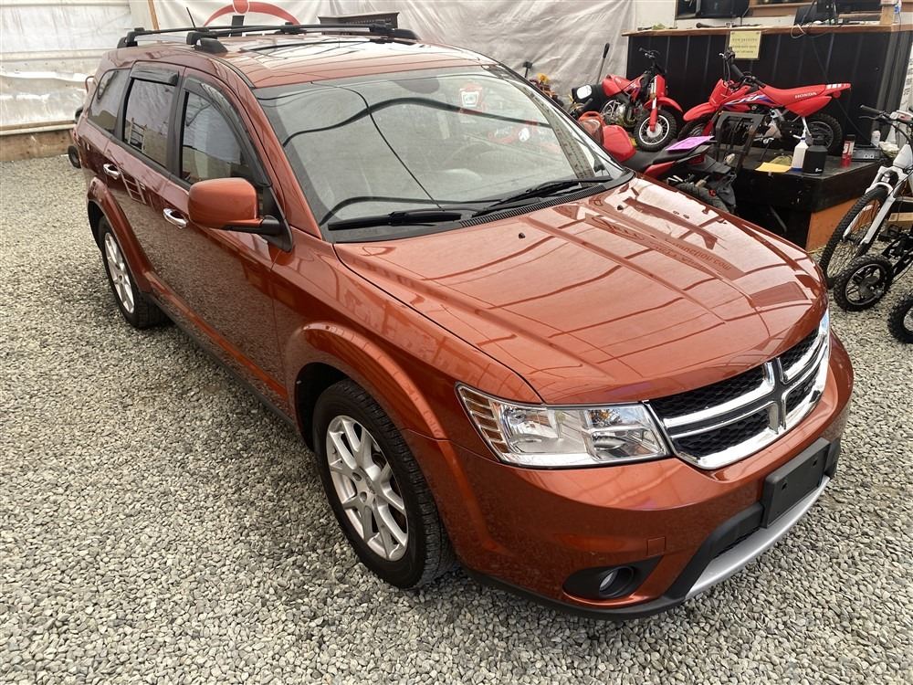 2014 DODGE JOURNEY R/T, ORANGE, 210592 KMS, 3.6L, 6 CYLINDER, GASOLINE, AUTOMATIC WITH TIPTRONIC, TRANSMISSION, ALL WHEEL DRIVE, 7 PASSENGER. AIR CONDITIONING, POWER WINDOWS, POWER LOCKS, KEY-LESS ENTRY, TILT STEERING, CRUISE CONTROL, ALLOY WHEELS, ANTI THEFT, DUAL AIR BAGS, POWER SUNROOF, CD PLAYER, BLUETOOTH, LEATHER SEATS, POWER SEATS, HEATED SEATS, HEATED MIRRORS, INFOTAINMENT CENTER, NAVIGATION, BACK UP CAMERA, PARKING SENSORS, TRACTION CONTROL, REMOTE START, REAR HEAT AND AIR, DUAL ZONE CLIMATE, STEERING WHEEL CONTROLS, FOG LIGHTS, ROOF RACK, POWER MIRRORS, PUSH-BUTTON START , TIRE PRESSURE MONITORING SYSTEM (TPMS), REAR-SEAT ENTERTAINMENT SYSTEM. DECLARATIONS: 1 ACCIDENTS 2 GLASS CLAIM, TOTALING $2961. GOOD SERVICE HISTORY, CARFAX SHOWING 27 RECORDS.