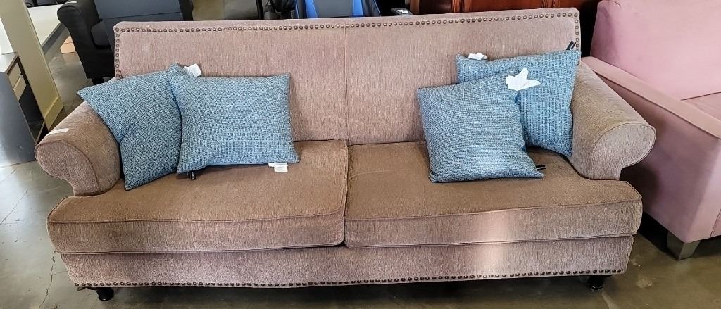 FABRIC COUCH WITH STUD ACCENTS AND THROW PILLOWS