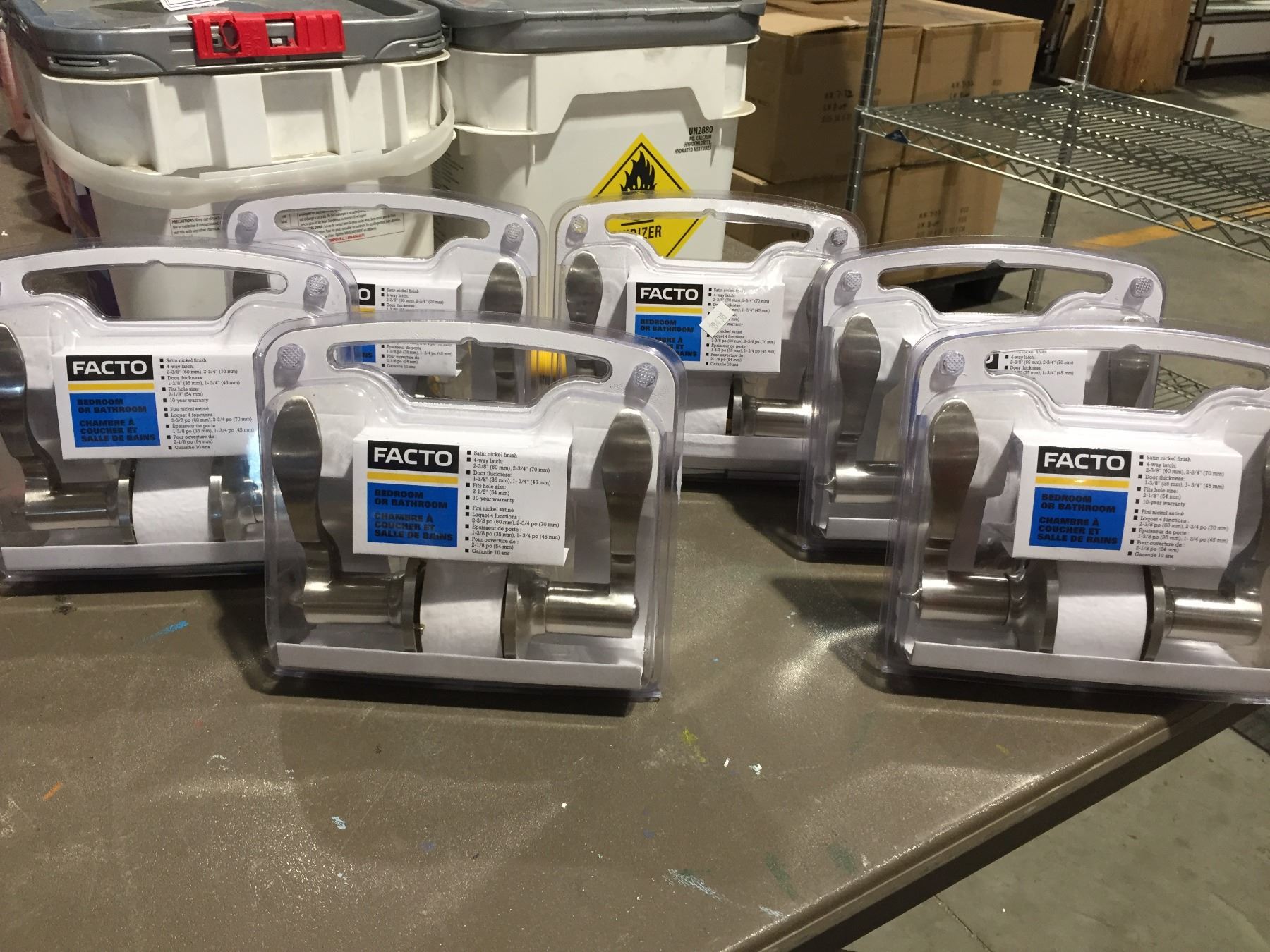 FACTO BEDROOM/BATHROOM HANDLE SET - SATIN NICKEL FINISH, 4-WAY LATCH: 2-3/8", 2-3/4", DOOR THICKNESS 1-3/8", 1-3/4" X 6 - B