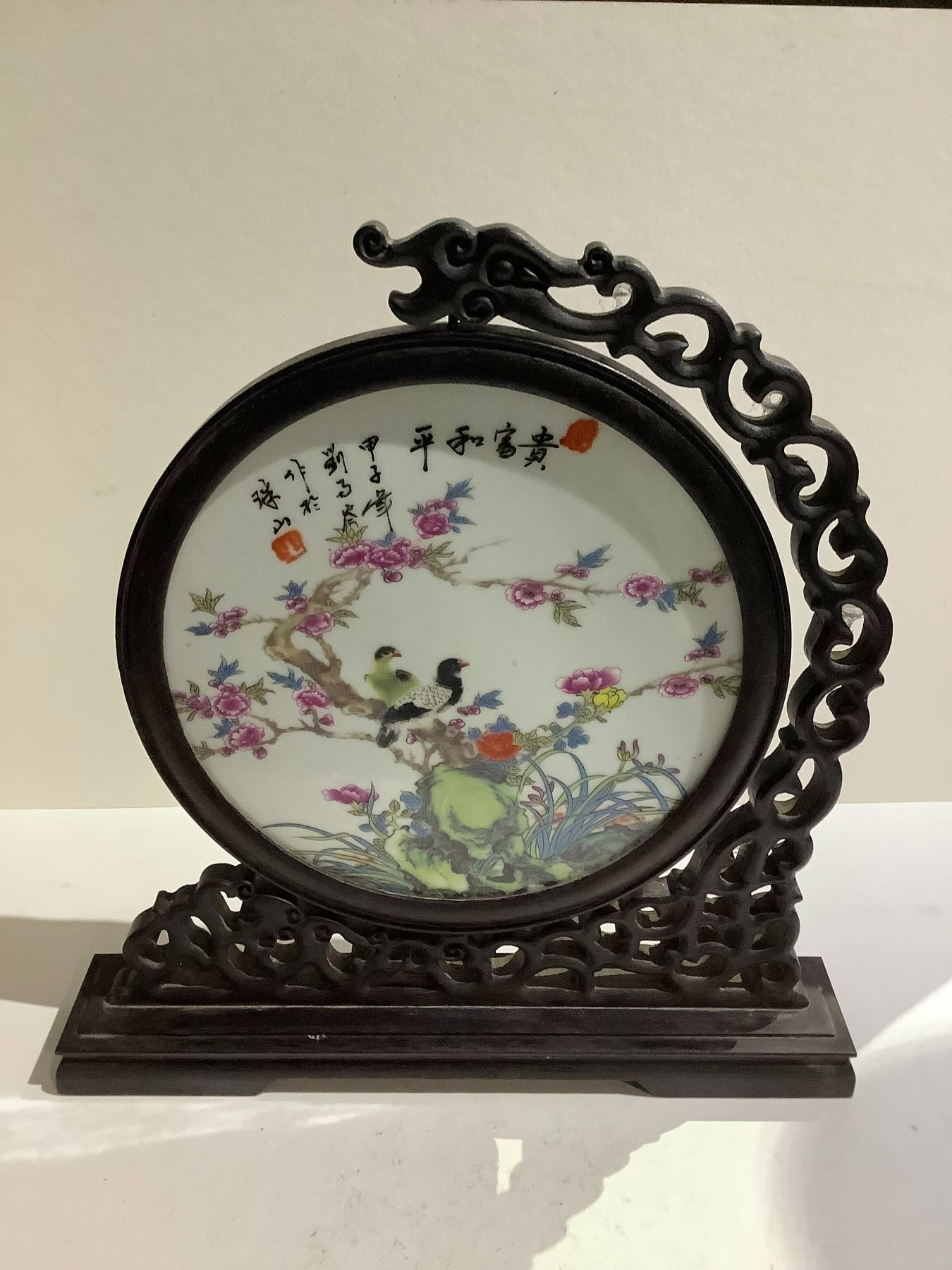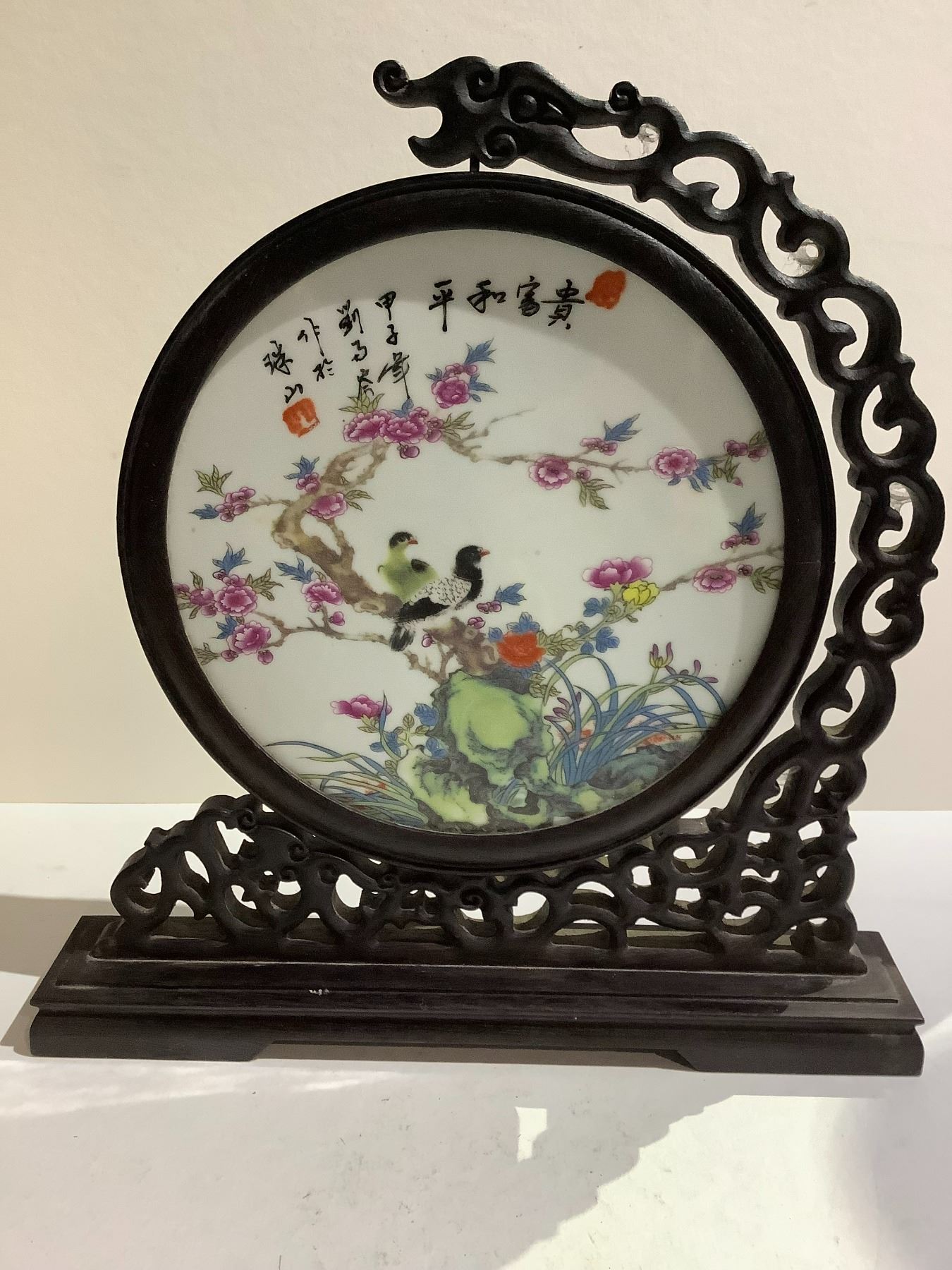 FAMILLE ROSE BIRD GARDEN ROTATING PLAQUE