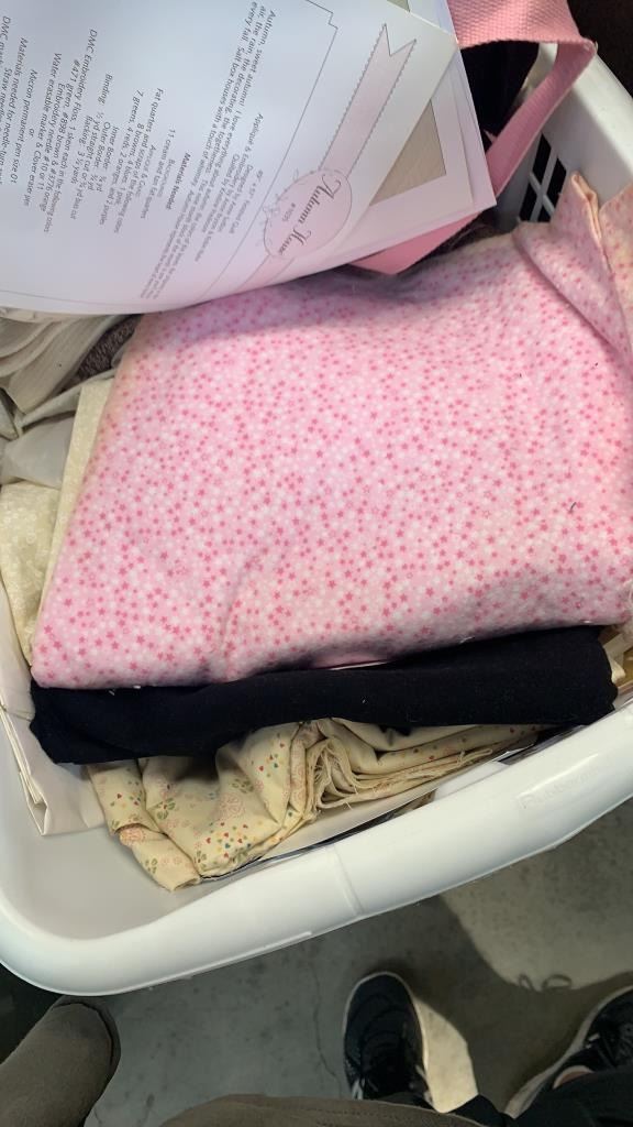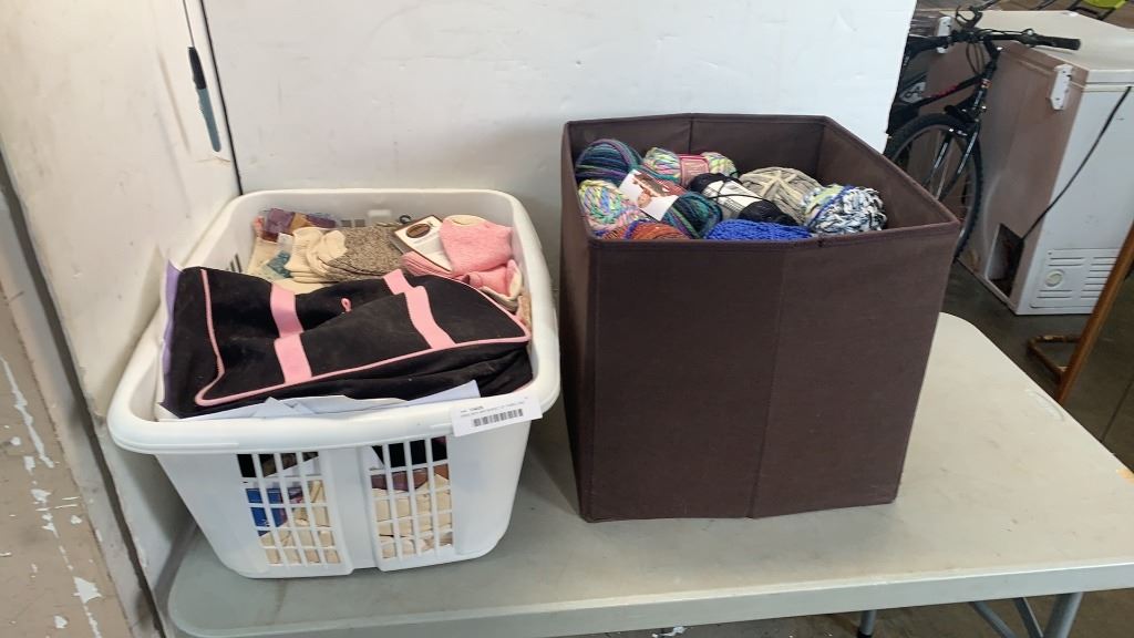 FARIC BOX AND BASKET OF FABRIC AND YARN