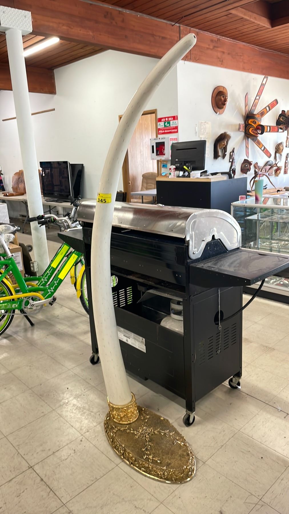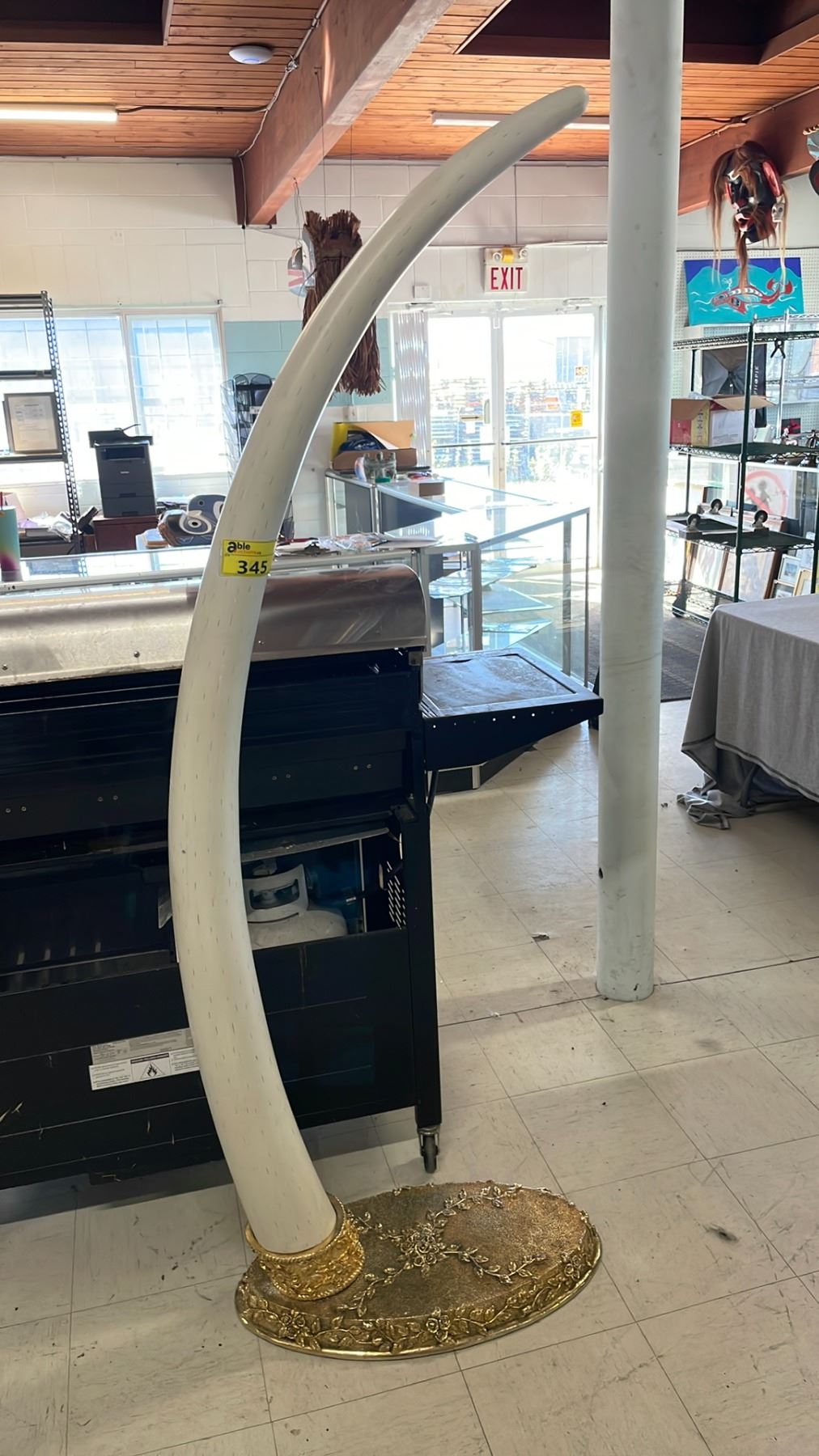 FAUX MAMMOTH TUSK ON STAND 75" HIGH