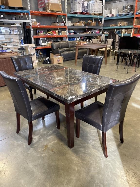 FAUX MARBLE DINING TABLE AND 4 CHAIRS
