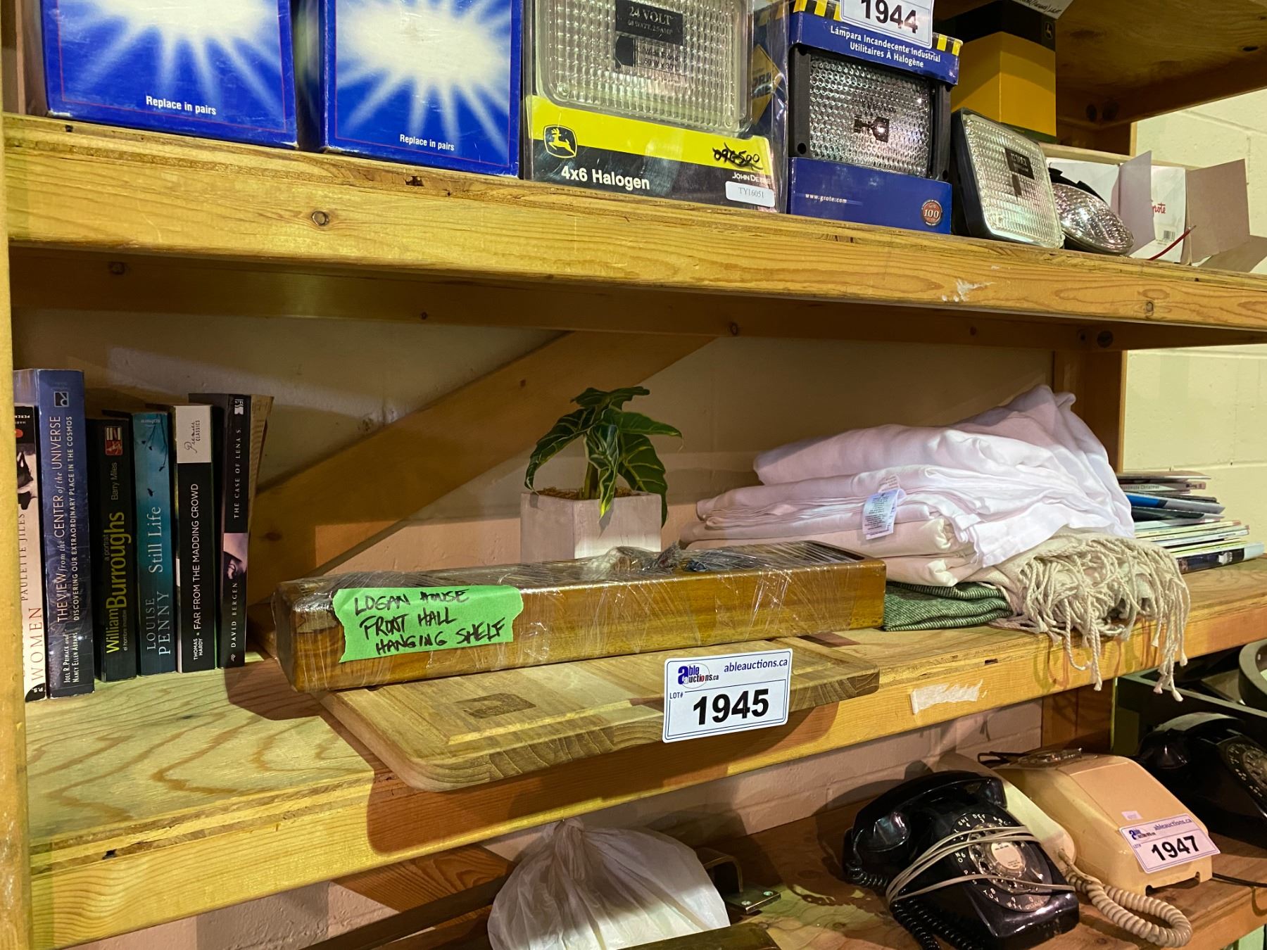 FAUX PLANT, BOOKS, MAGAZINES, BLANKETS, CUTTING BOARD