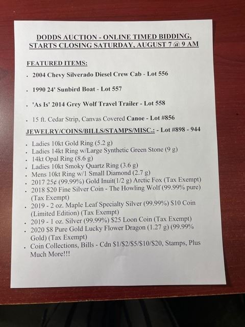 If paying by e-transfer, send e-transfer to: bob@doddsauction.com