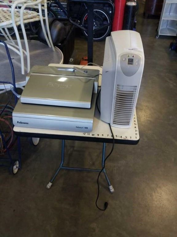 FELLOWS BINDING MACHINE AND BIONAIRE BAP725 AIR FRESHENER BOTH WORKING