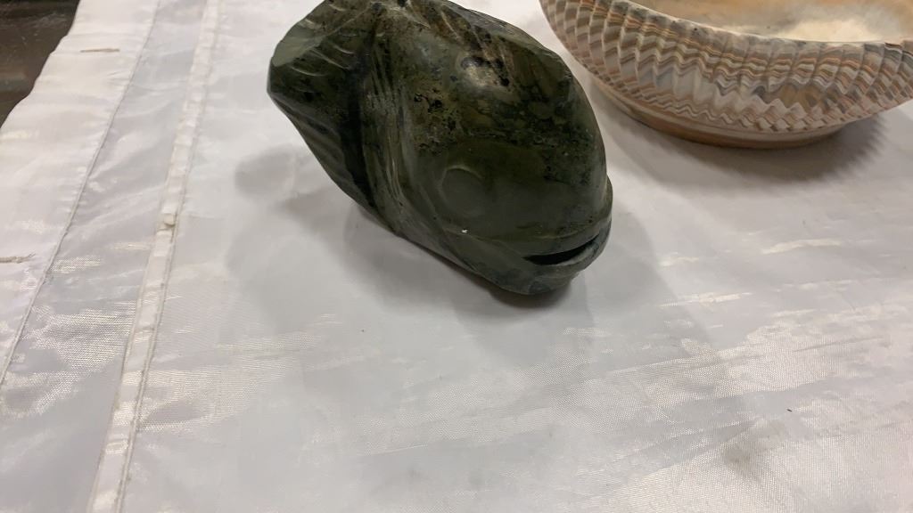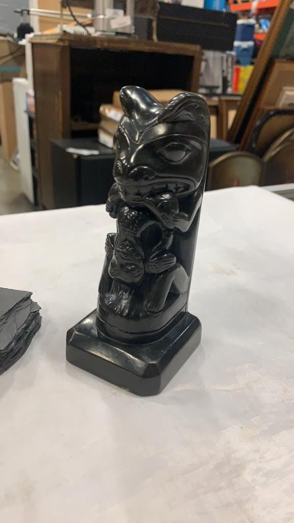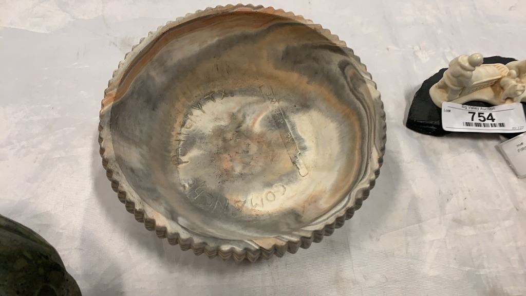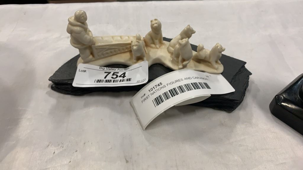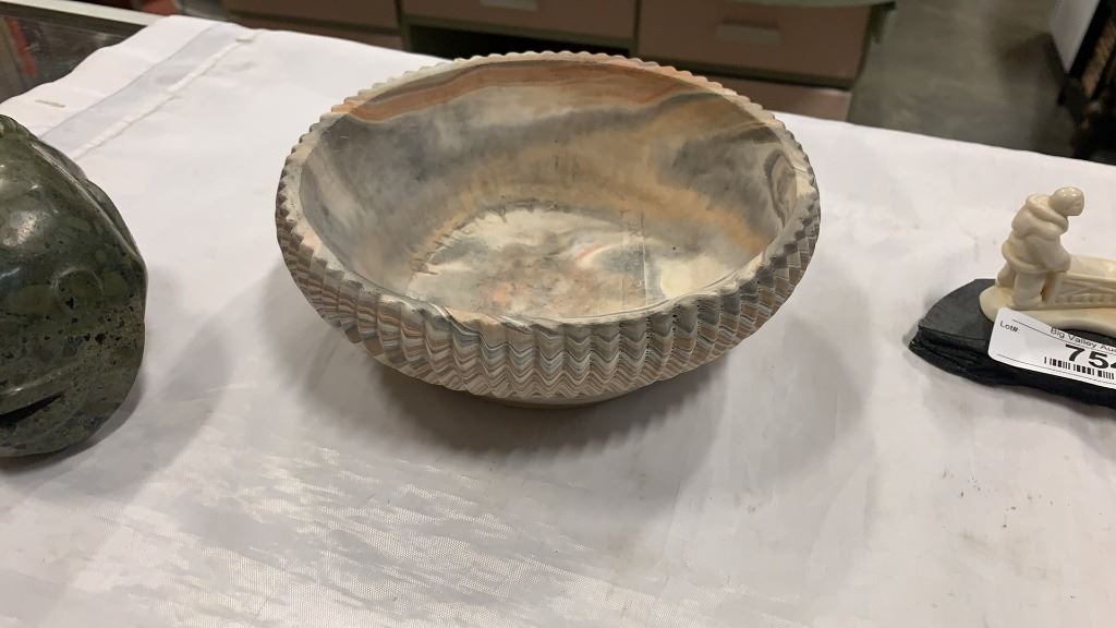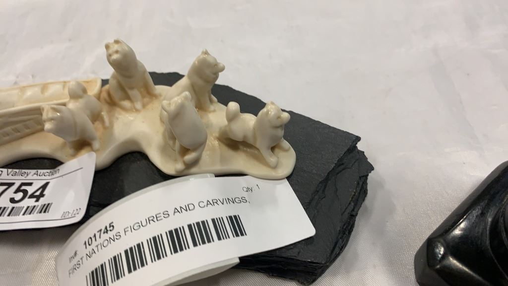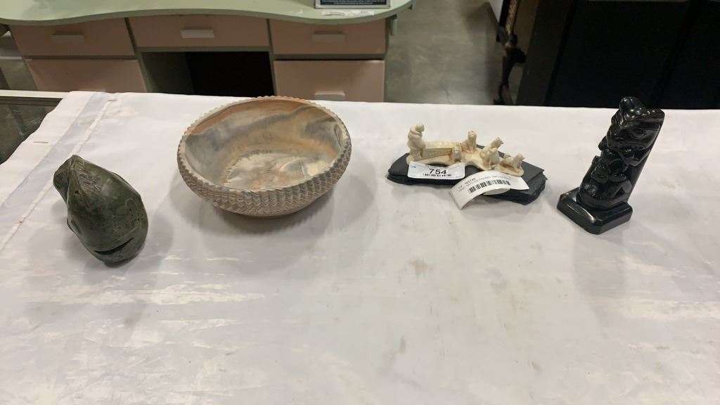 FIRST NATIONS FIGURES AND CARVINGS, SOAPSTONE, COMANCHE POTTERY BOWL
