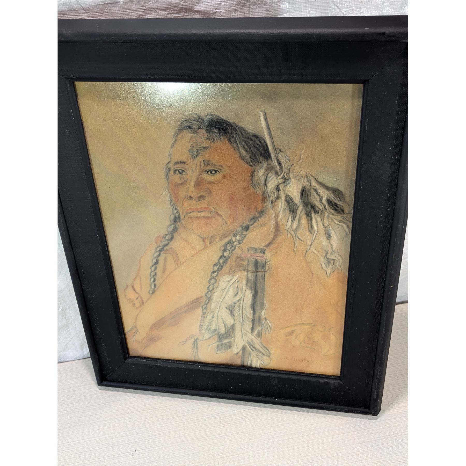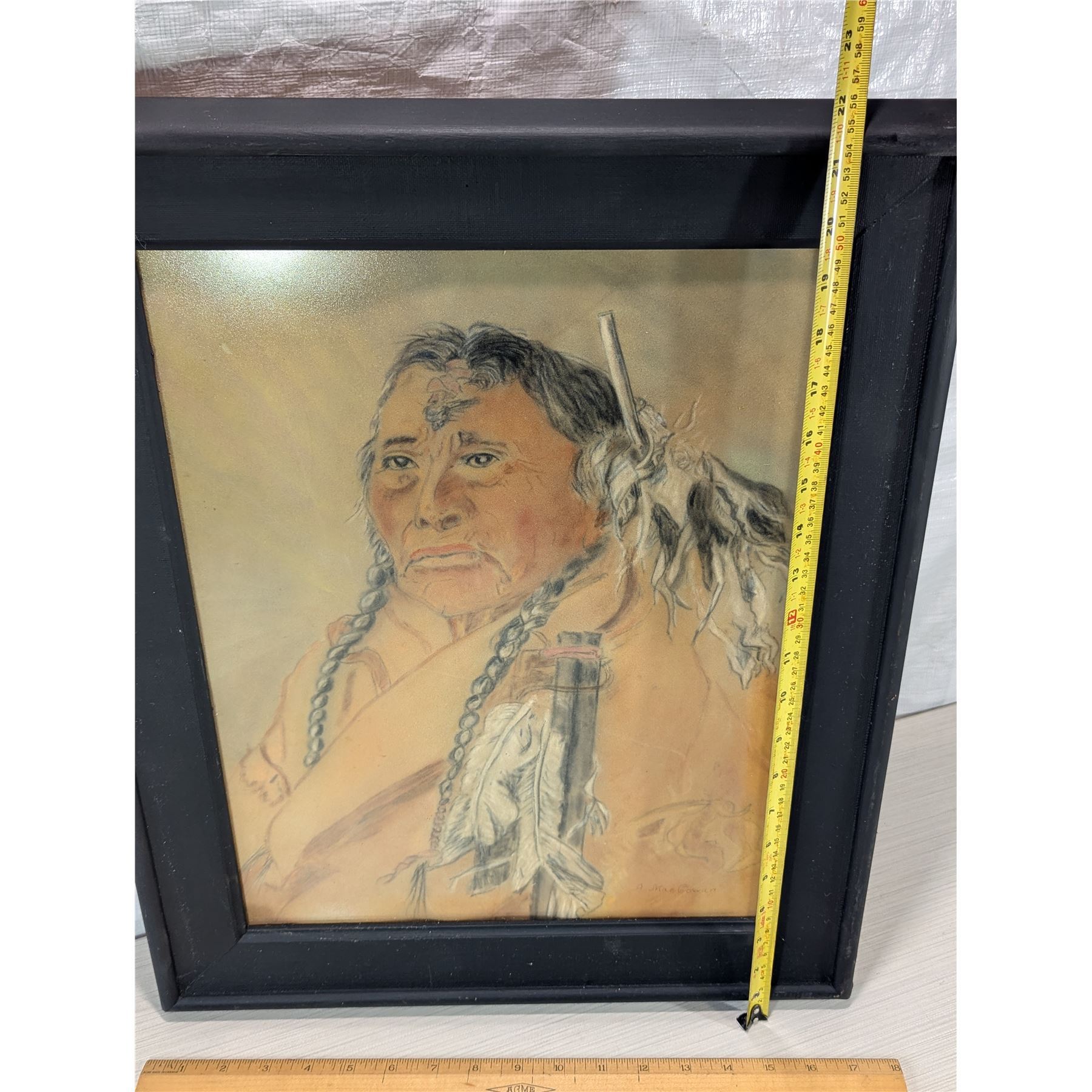 FIRST NATIONS PORTRAIT by A. McGowan (22" x 17.5"appears to be pastel or coloured pencil.