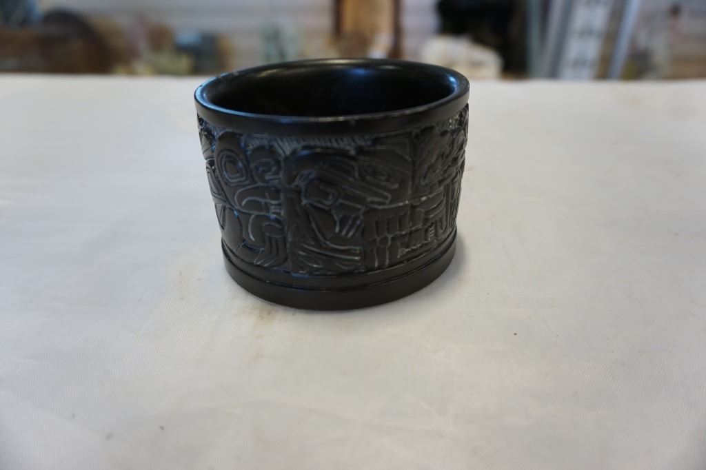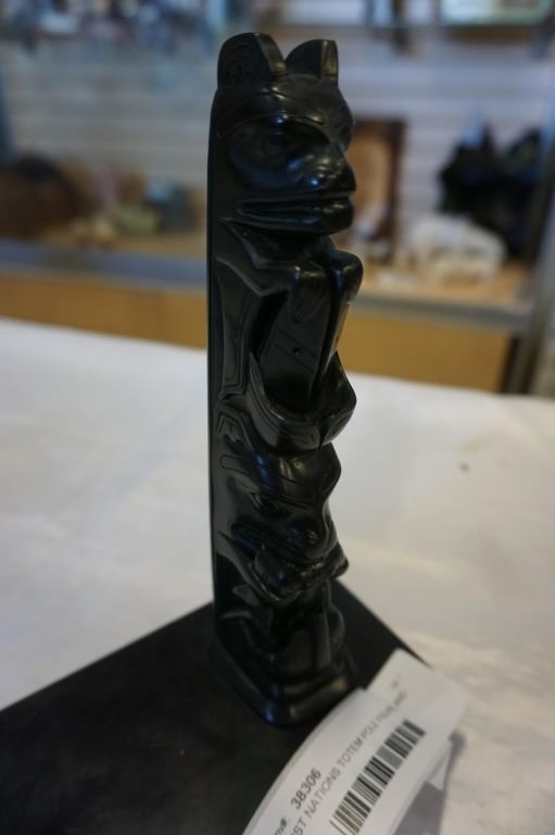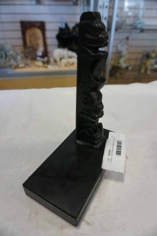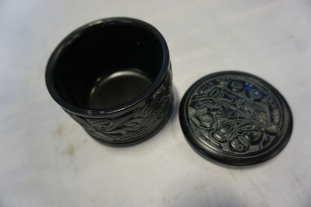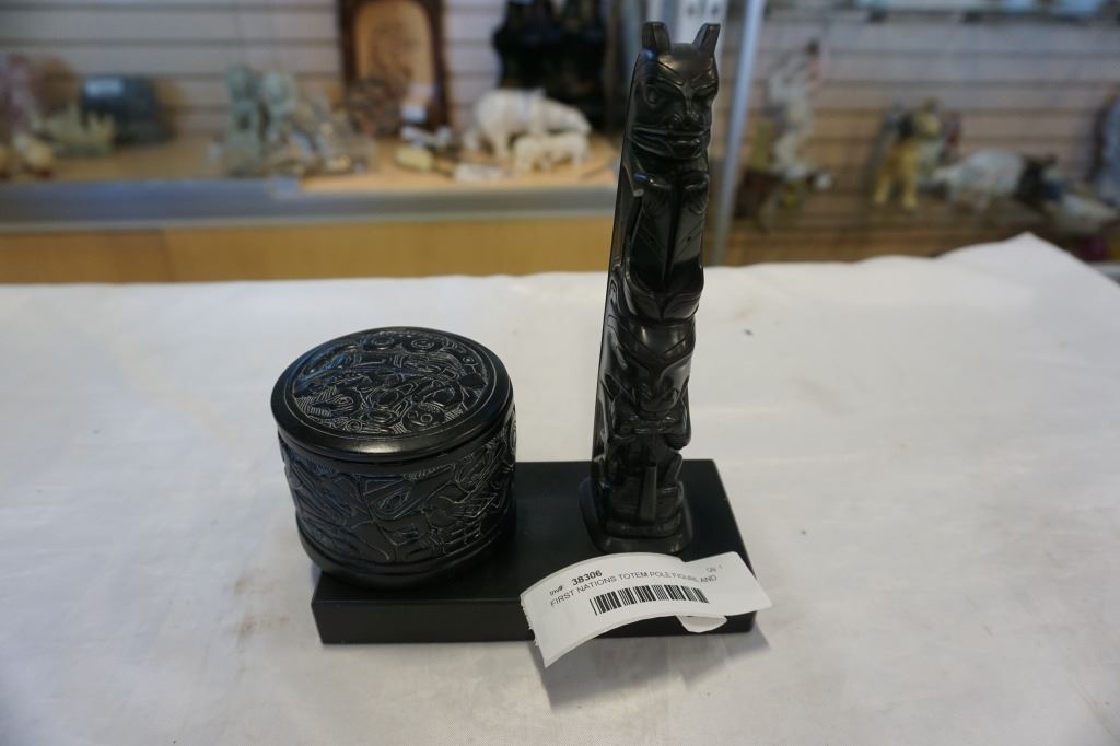 FIRST NATIONS TOTEM POLE FIGURE AND LIDDED DISH