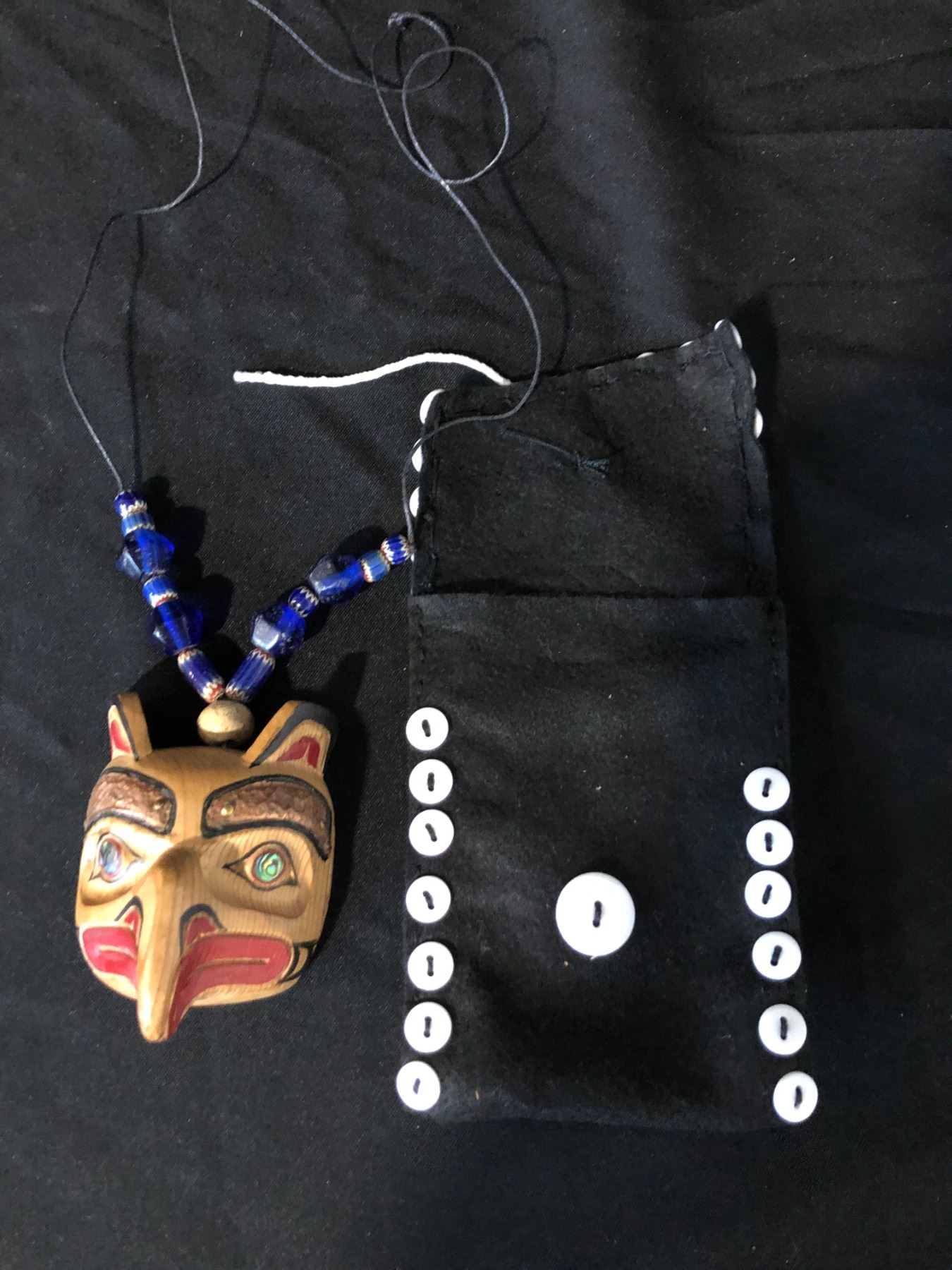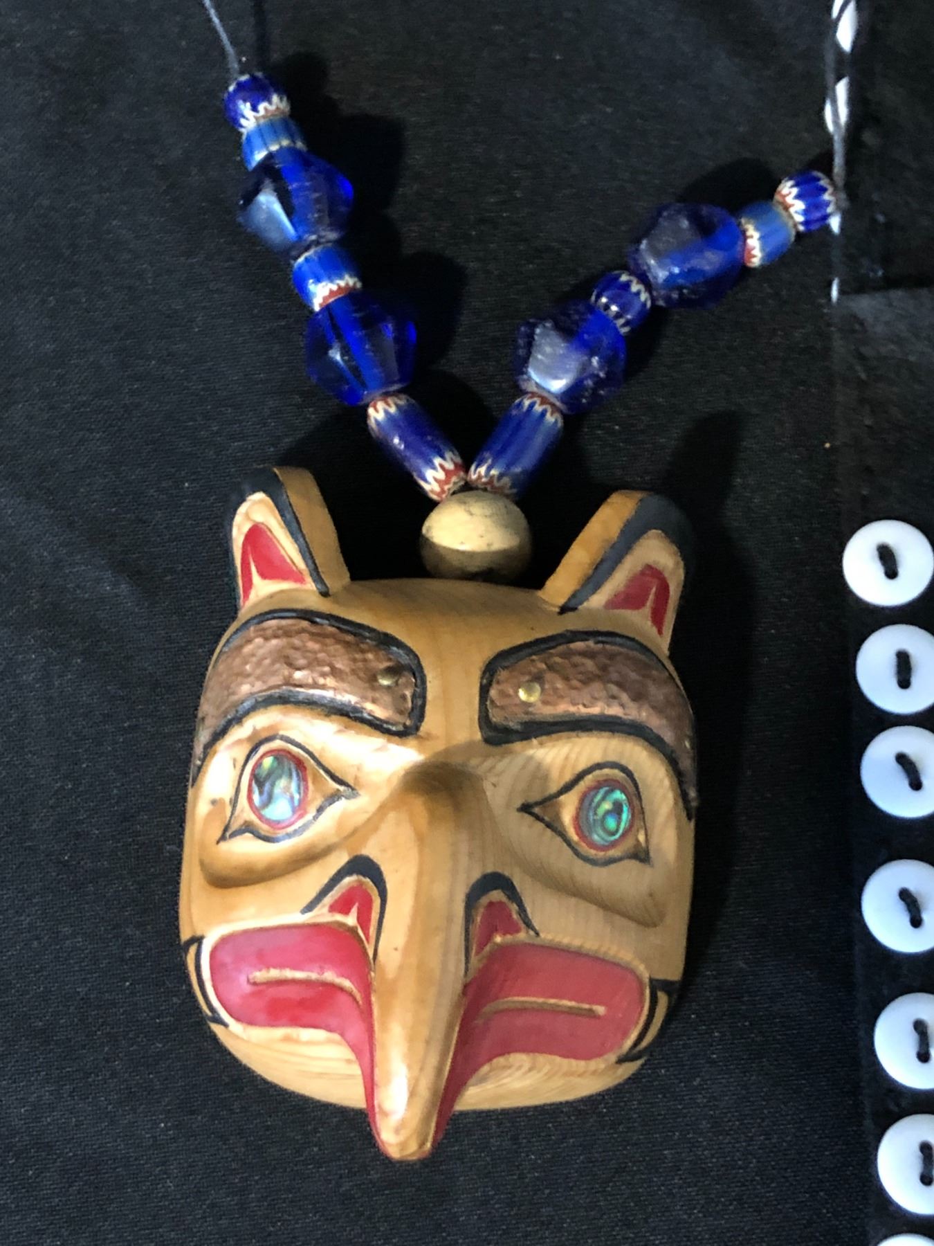 FIRST NATIONS WOODEN MASK PENDANT BEADED NECKLACE