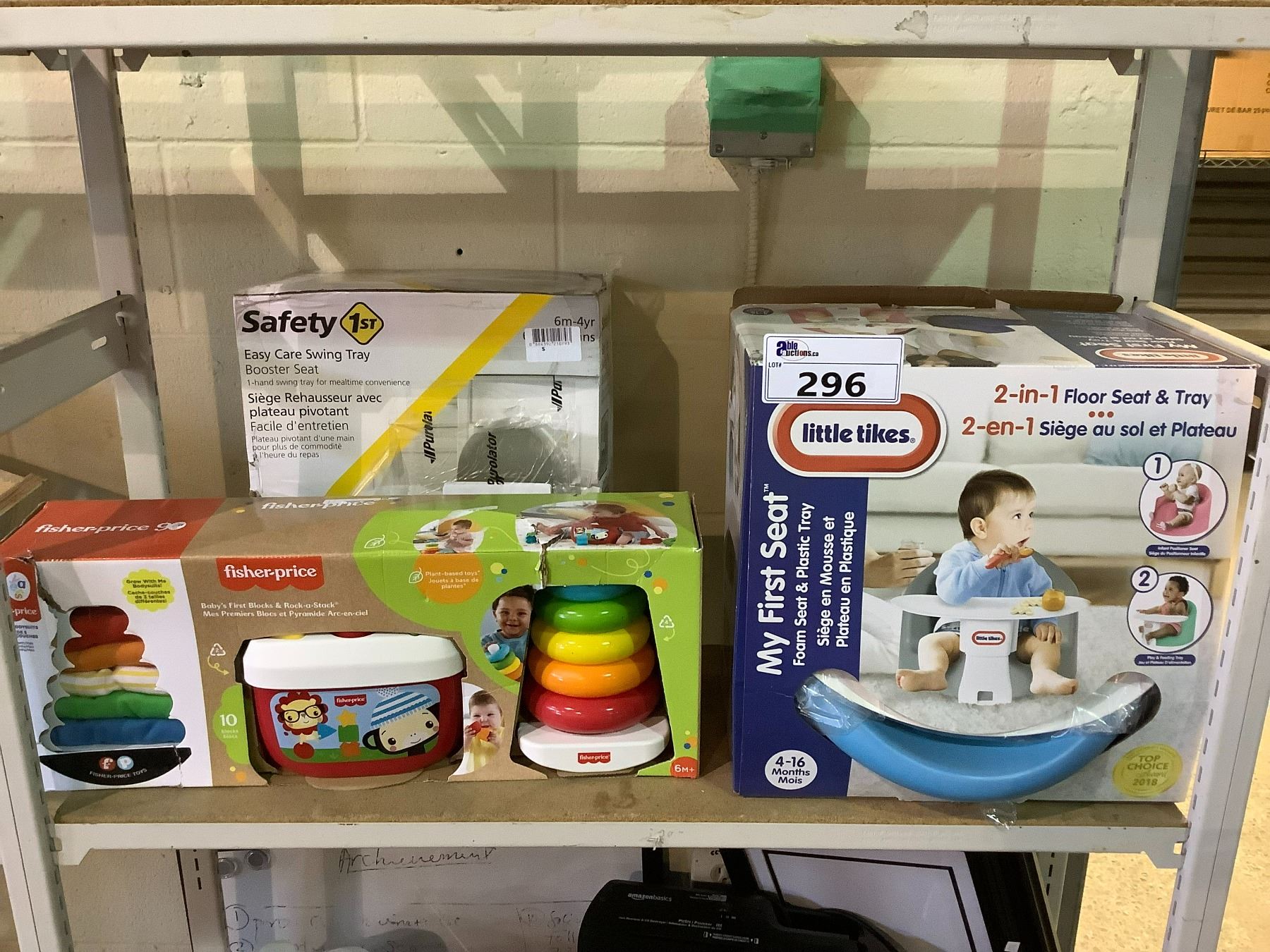 FISHER PRICE BABIES FIRST BLOCKS & ROCK-A-STACK, LITTLE TIKES 2-IN-1 FLOOR SEAT & TRAY, & SAFETY 1ST EASY CARE SWING TRAY
