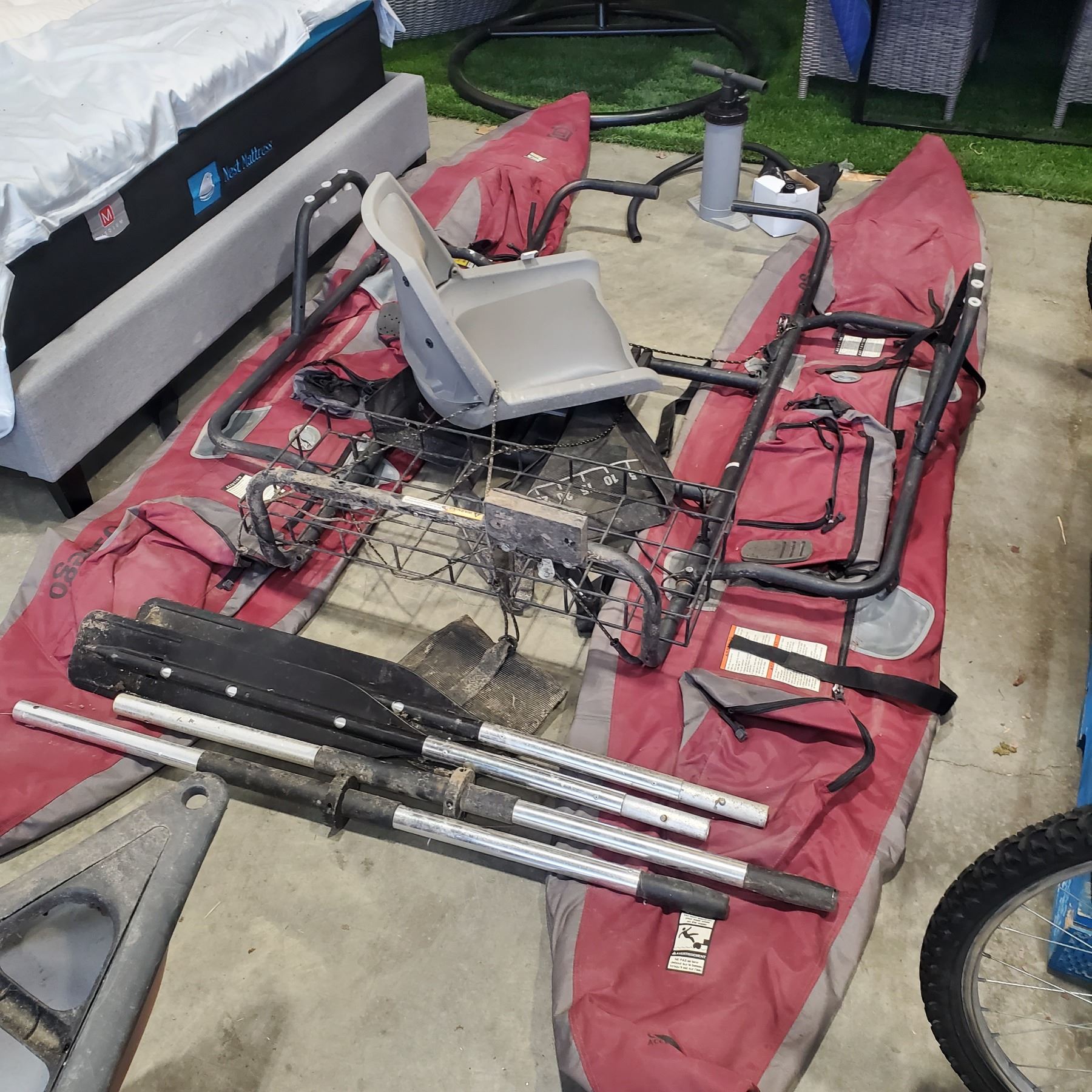 FISHING RAFT WITH INFLATEABLE PONTOONS, OARS, INFLATOR
