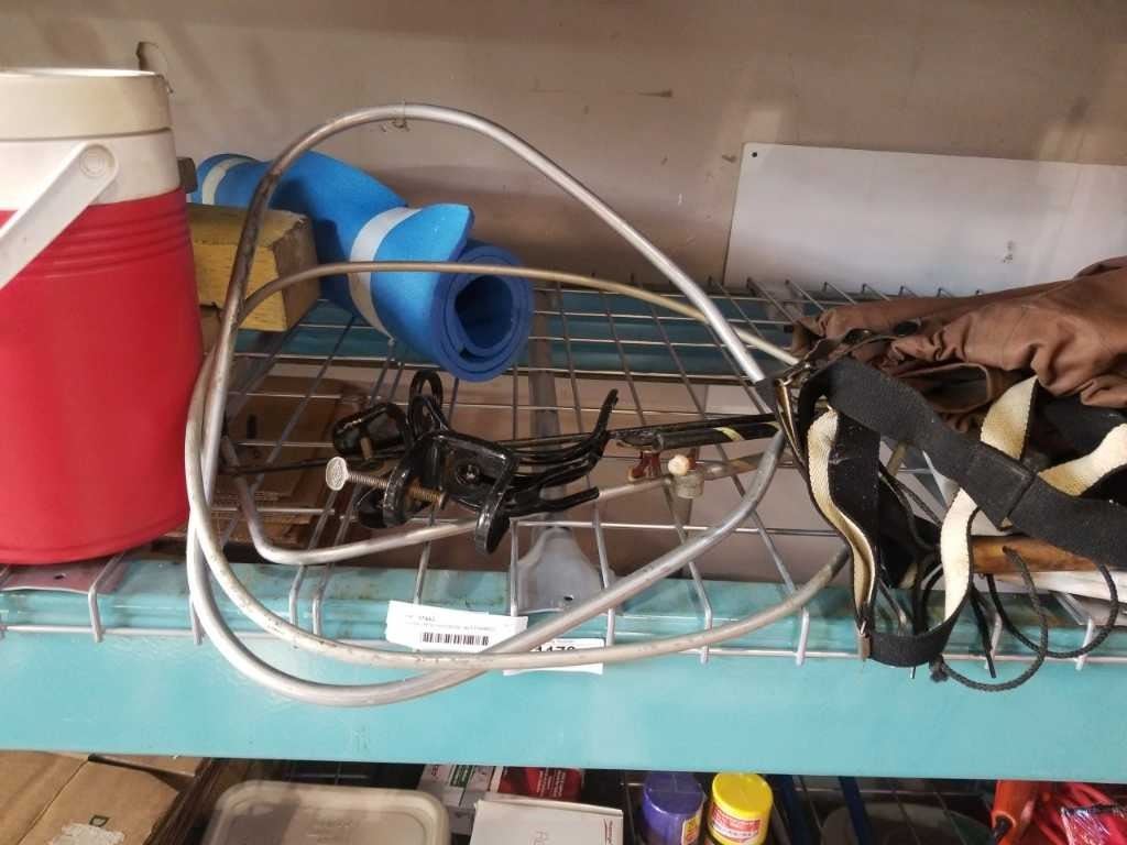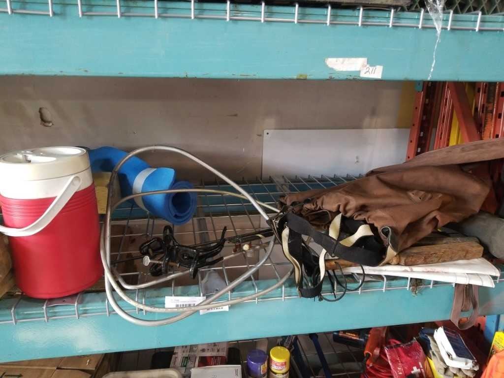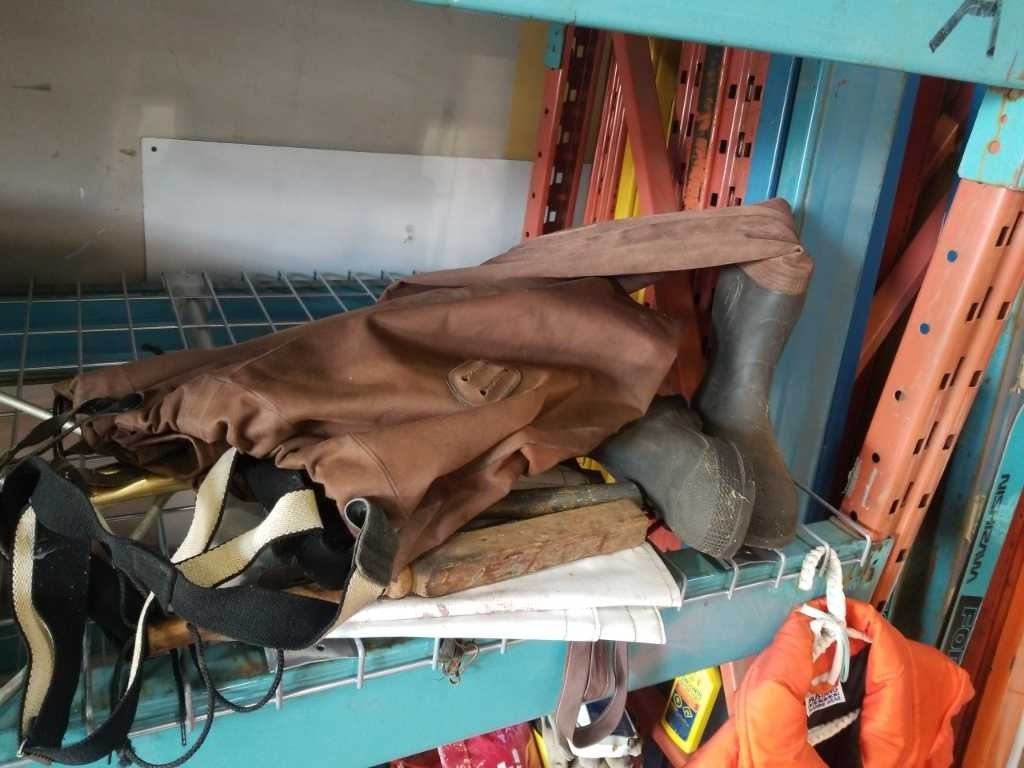 FISHING ROD HOLDERS, NET FRAMES, TOOLS, COOLER, FOAM MAT, WADERS