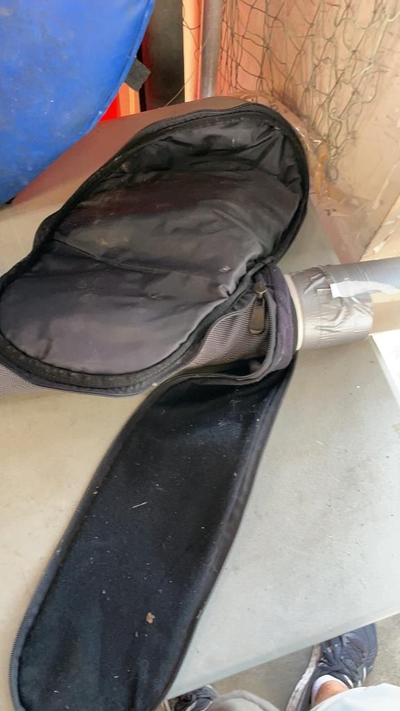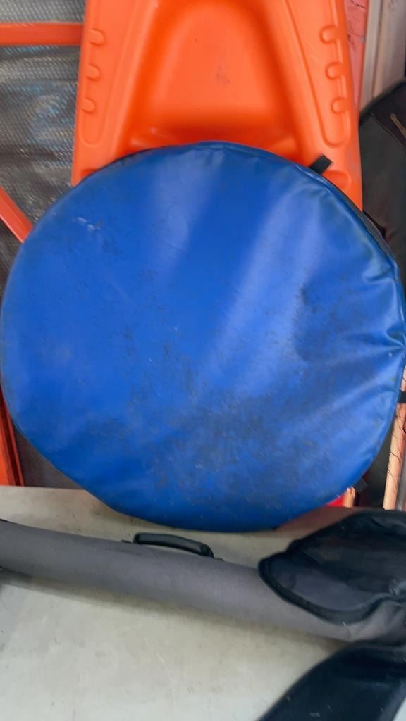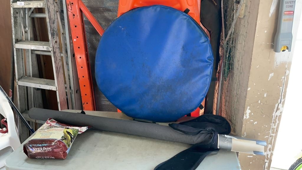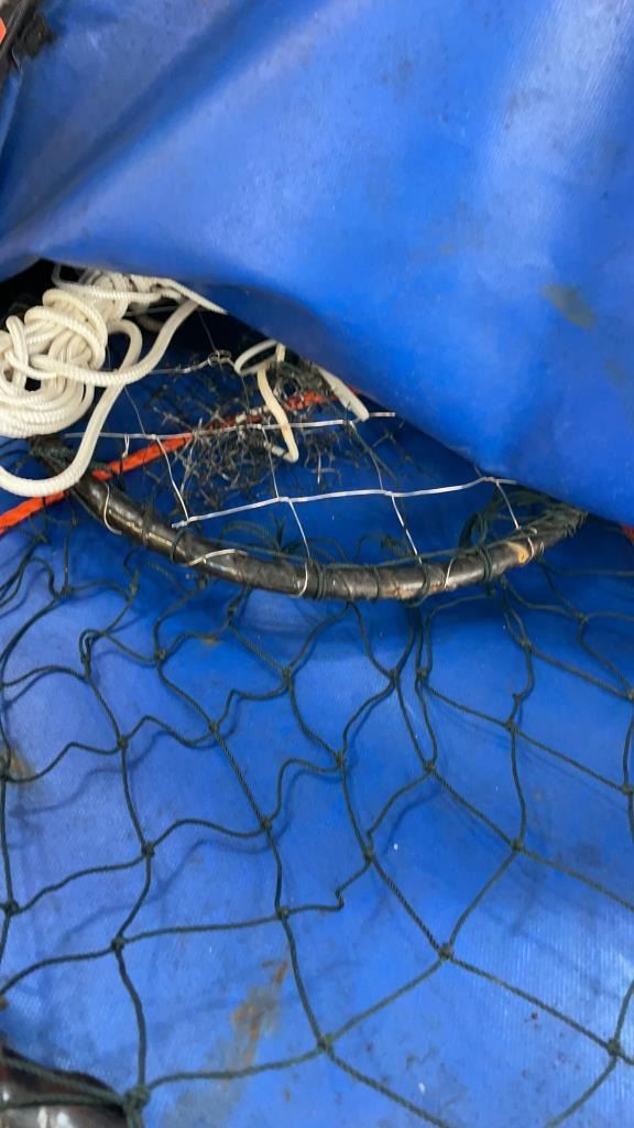FISHING ROD PVC HOLDER, BAG OF SUNFLOWER CHIPS WITH SHELLFISH TRAP
