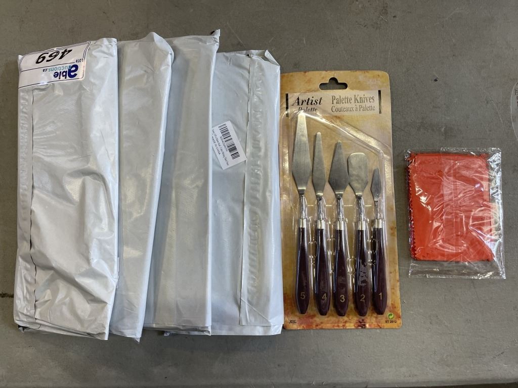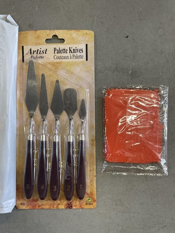 FIVE NEW SETS OF PALETTE KNIVES AND MIXING PLATES RETAIL $100