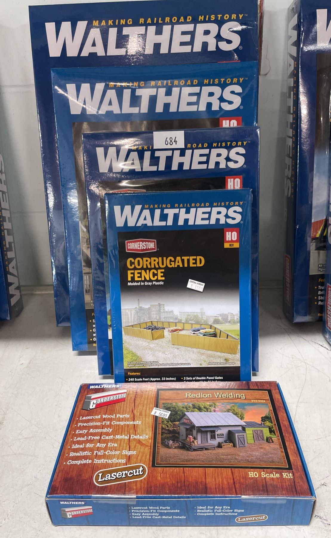 FIVE WALTHERS HO SCALE MODEL TRAIN SCENIC STRUCTURE KITS