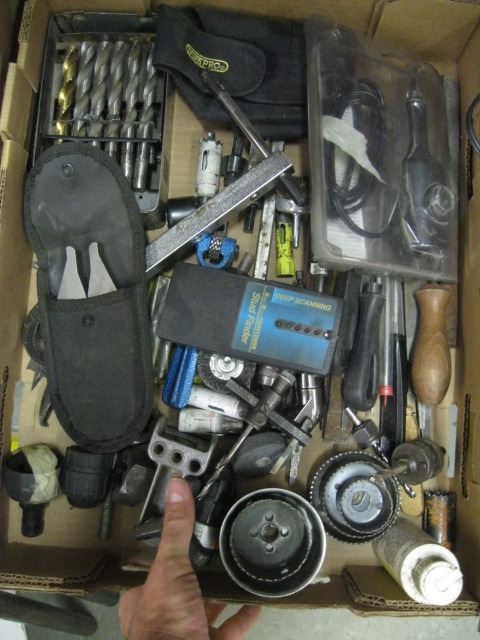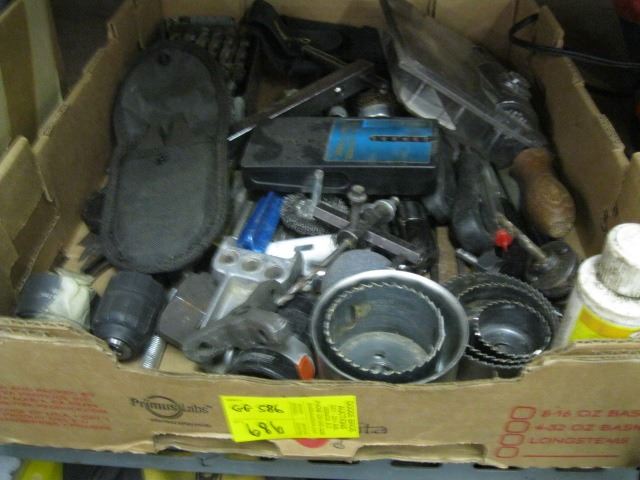 FLAT OF ASSORTED DRILL BITS, FILES, HOLE SAWS ETC