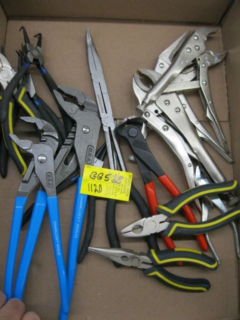 FLAT OF CHANNEL LOCKS, VISE GRIPS ETC