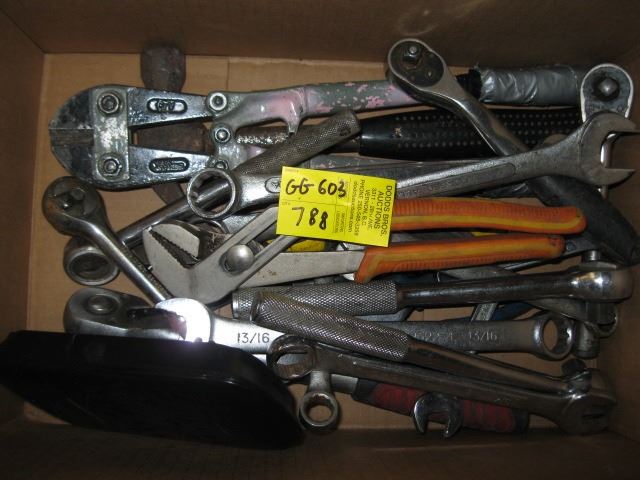 FLAT OF WRENCHES, BOLT CUTTERS ETC
