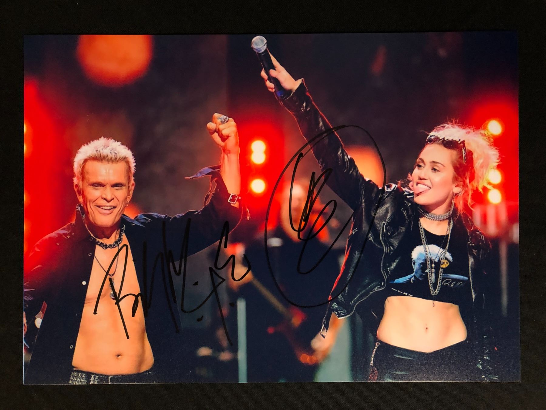 FLEA AND MILEY CYRUS SIGNED 8X10 PHOTO (RA COA)