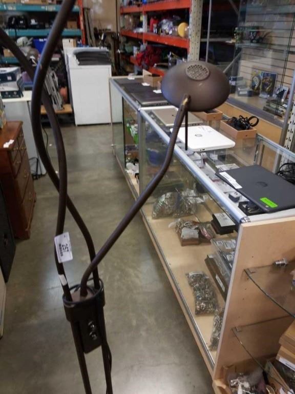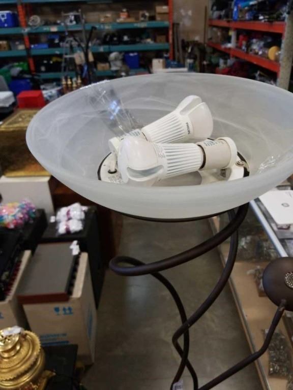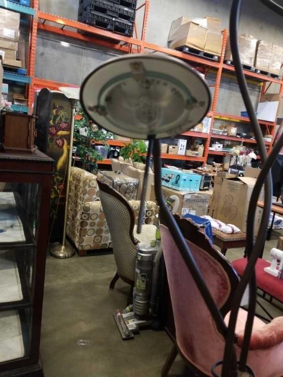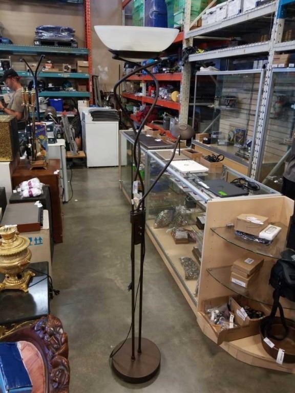 FLOOR LAMP WITH GLASS SHADE AND ADJUSTABLE READING LAMP