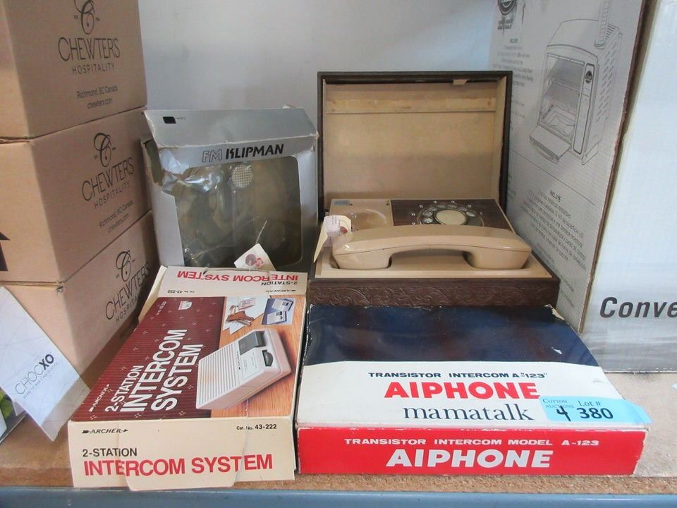 Includes a mamatalk transistor AIphone & a retro desk phone in wood cases
