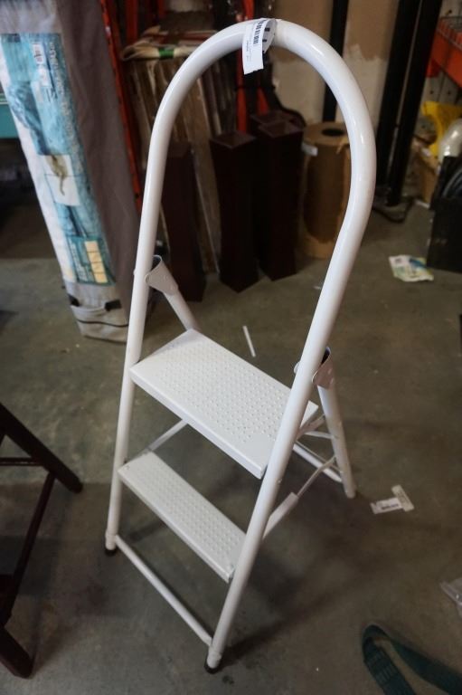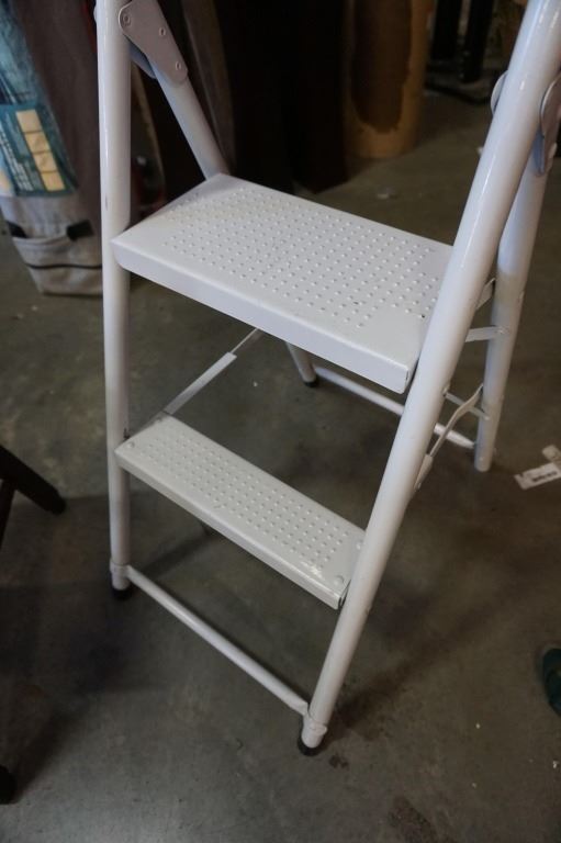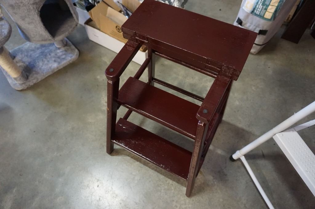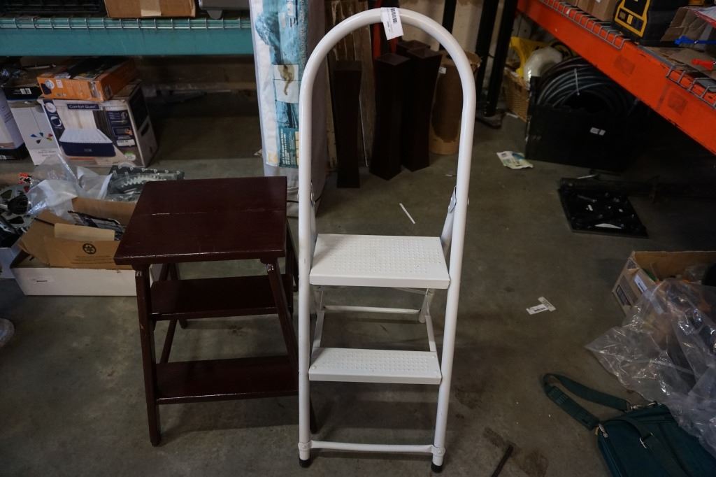 FOLDING 2 STEP LADDER AND WOOD 2 STEP STOOL