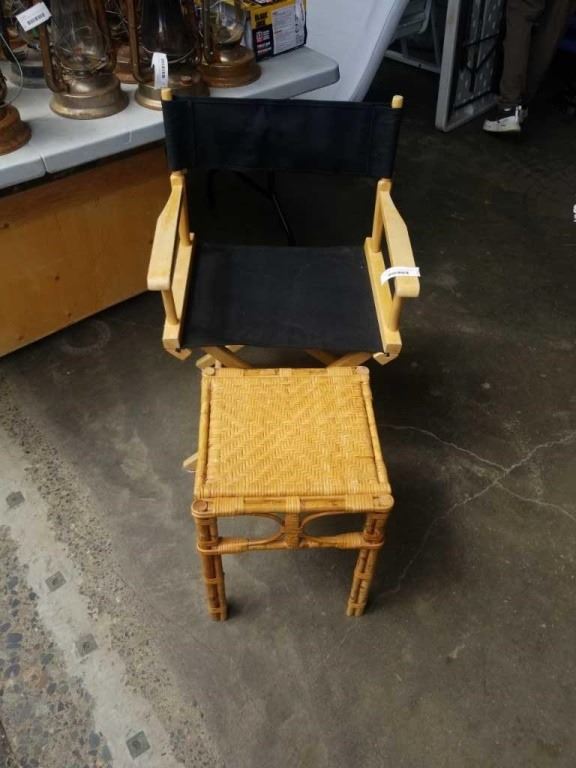 FOLDING DIRECTORS CHAIR AND WICKER ENDTABLE