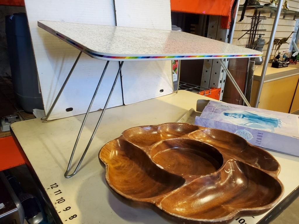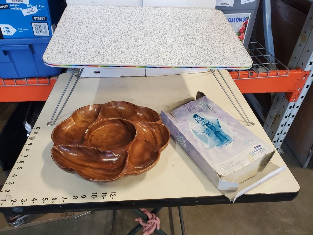 FOLDING LEG TRAY, WITH LAZY SUSAN TRAY AND DOLL