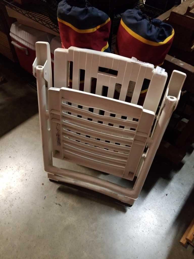 FOLDING PATIO CHAIRS AND 2 FOLDING CAMP CHAIRS