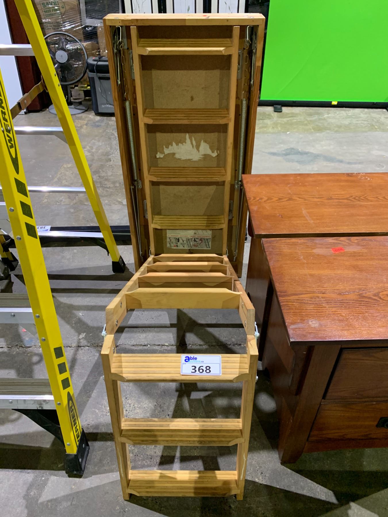 FOLDING WOOD ATTIC LADDER CEILING PANEL APPROX 22.5"W X 46.5"L & LADDER APPROX 103"L X 15"W